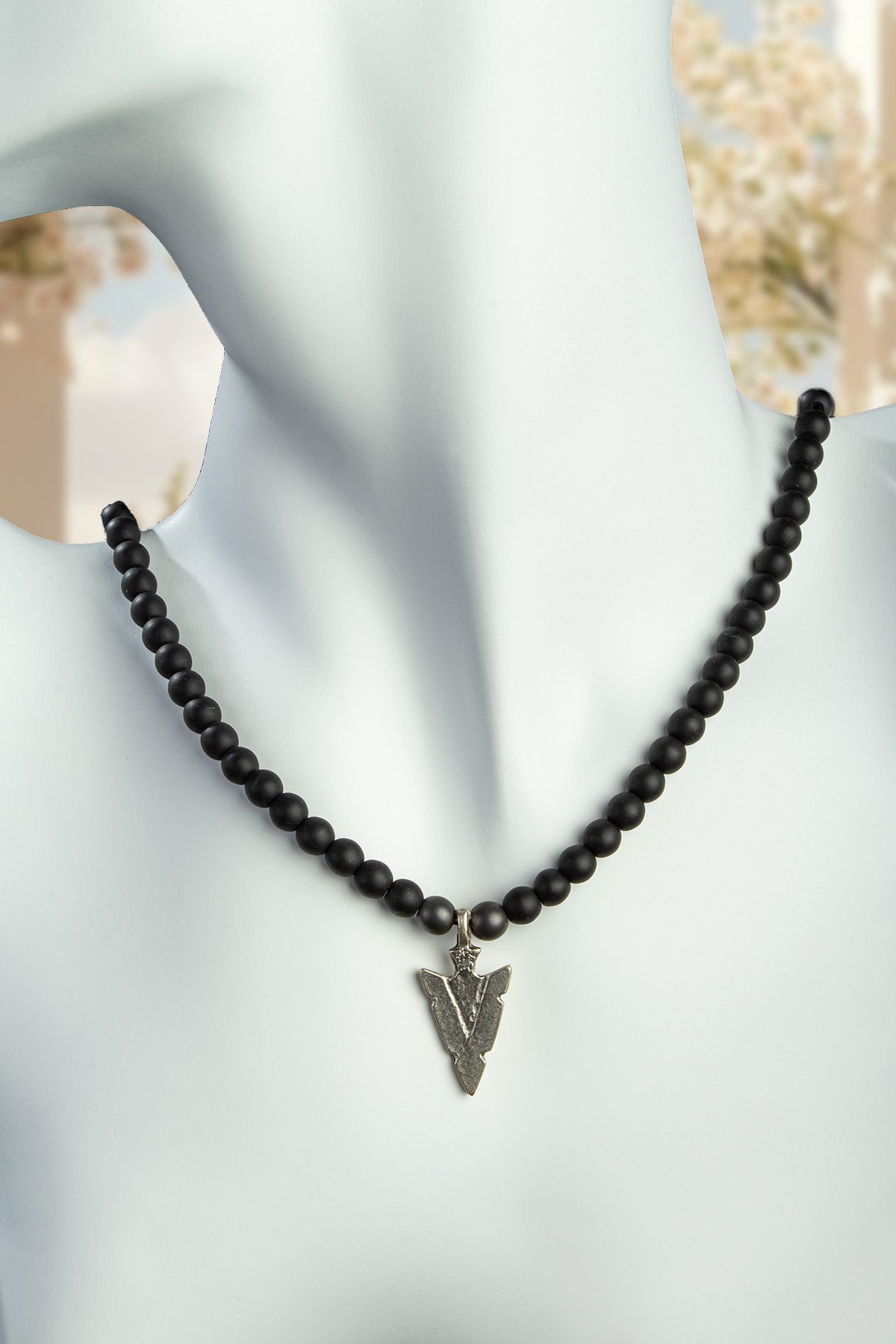 Lav Taşı Doğal Taş Küre Kesim Ok Ucu Figürlü Kolye