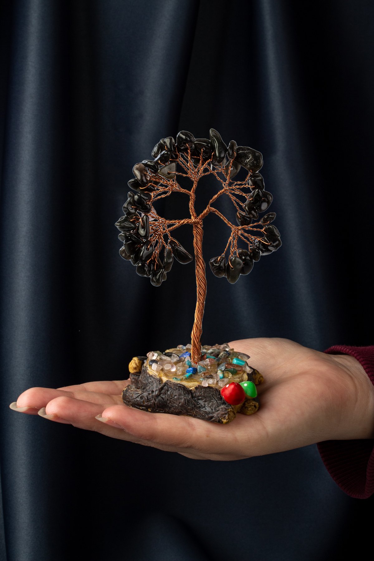 Obsidyen Taşı El Yapımı Doğal Taş Dekoratif Ağaç