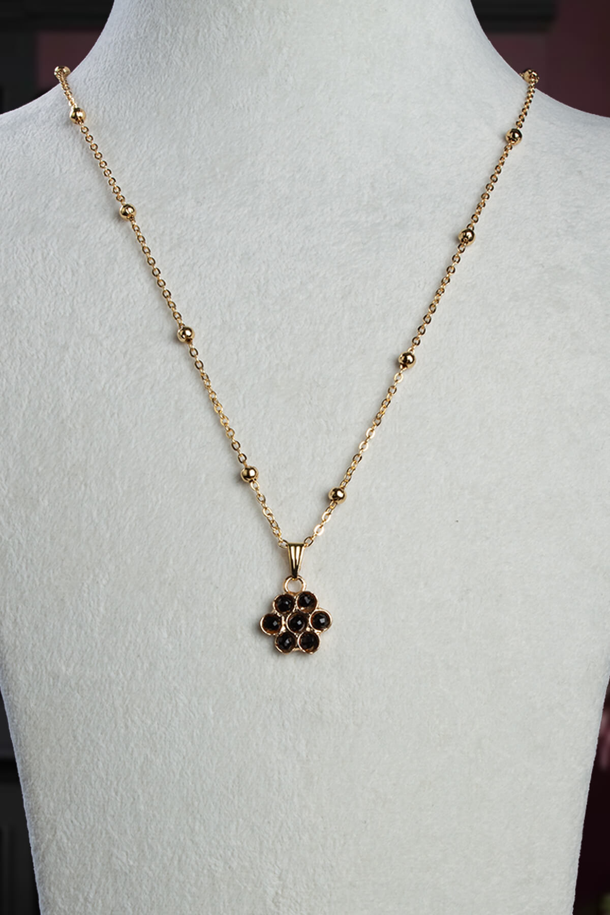 Oniks Doğal Taş Çiçek Kesim Kolye (KLYDGL-0674)