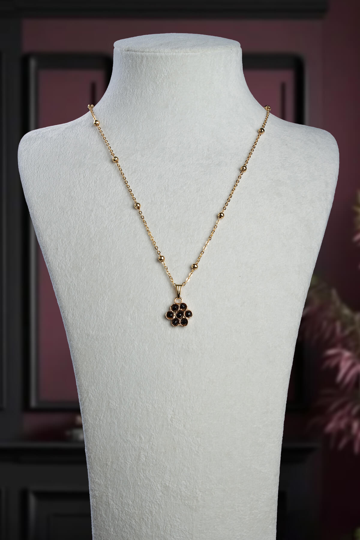 Oniks Doğal Taş Çiçek Kesim Kolye