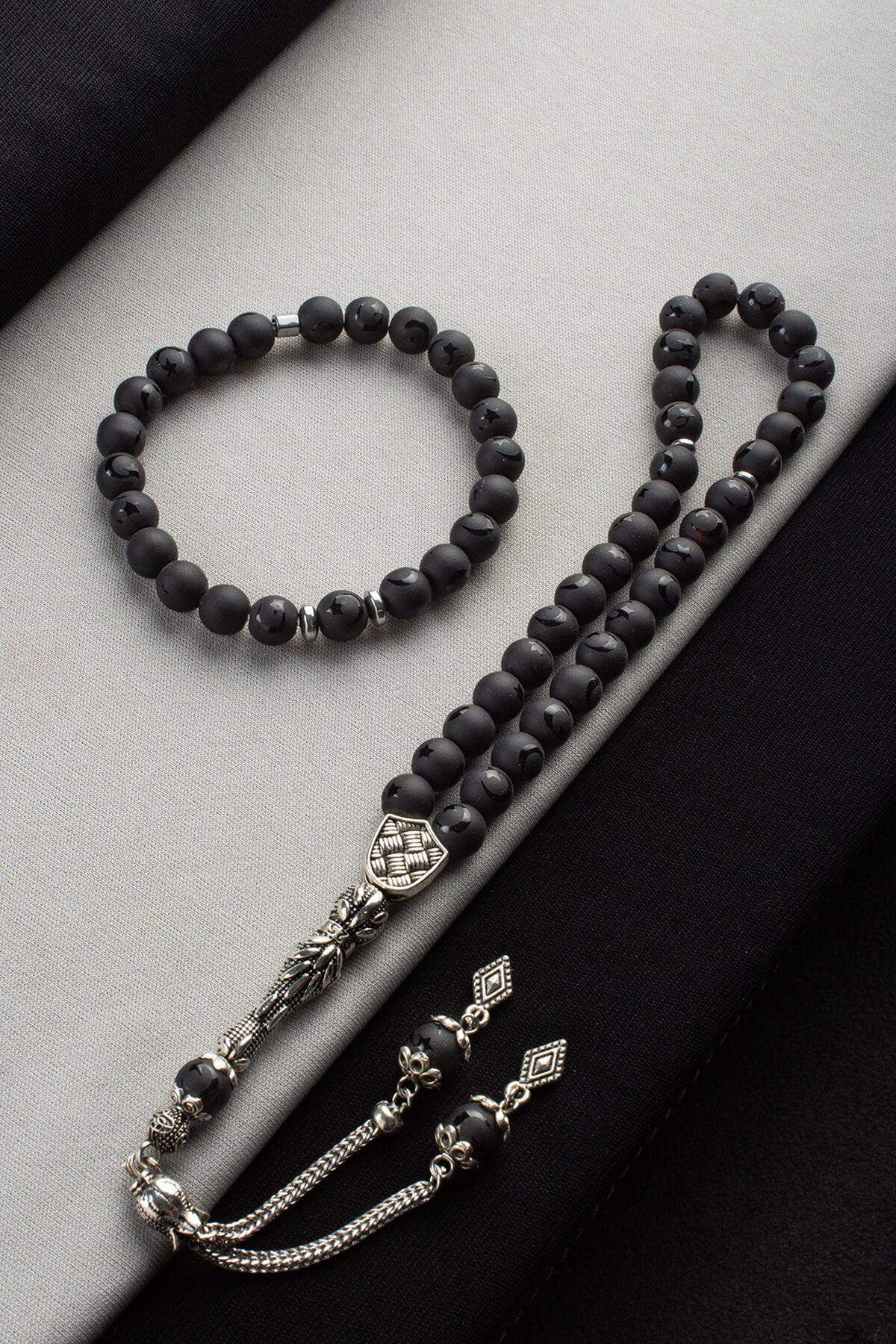 Oniks Doğal Taş Misina Bileklik & Oniks 33 lü 8mm Tesbih Seti (DGLSET-0036)
