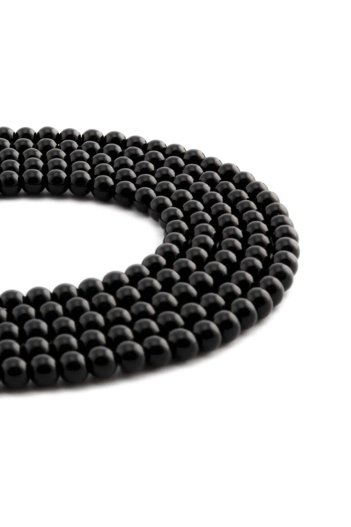 Oniks Doğal Taş Parlak Siyah Küre Kesim 4mm Dizi [AA]