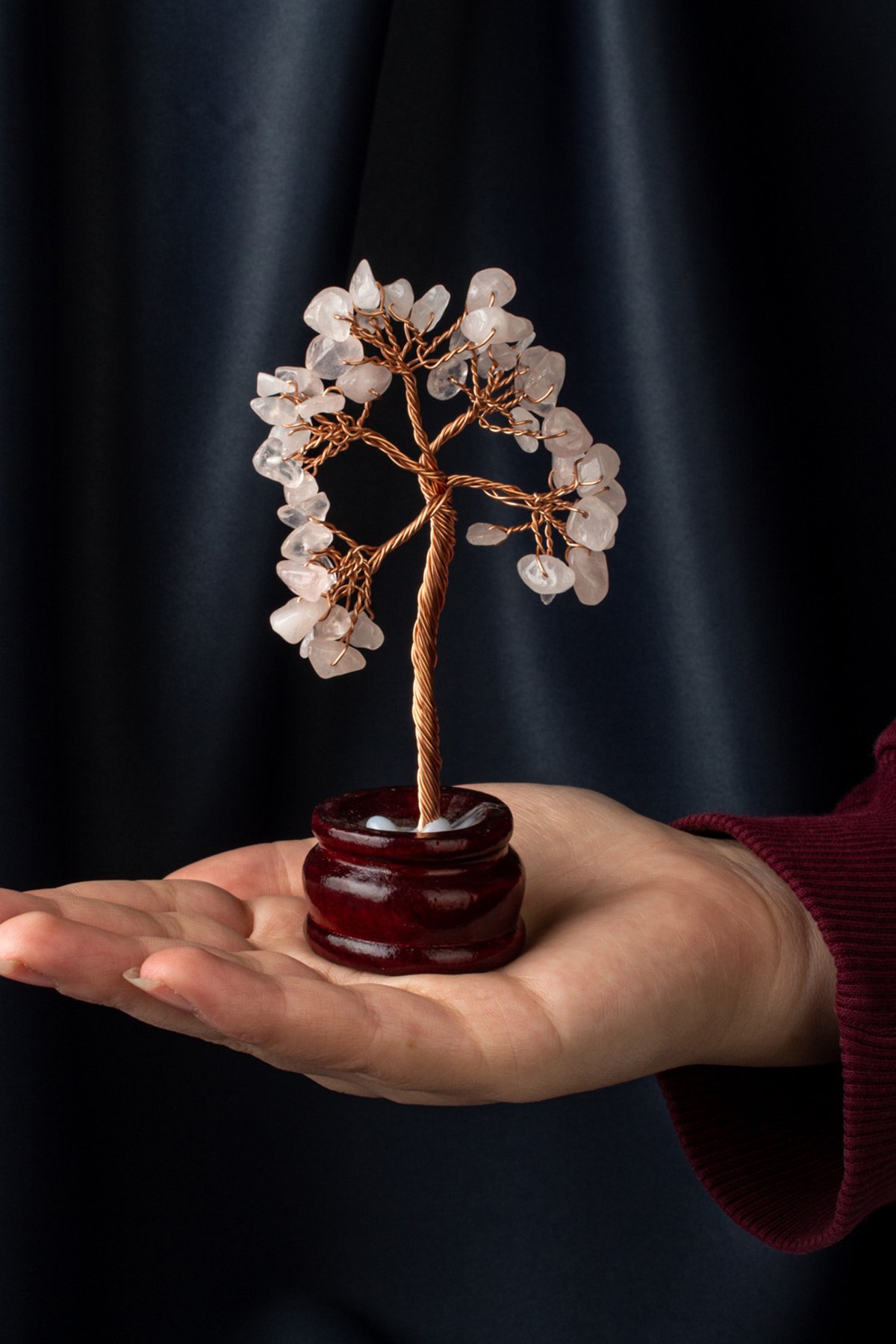 Pembe Kuvars Taşı El Yapımı Doğal Taş Dekoratif Ağaç