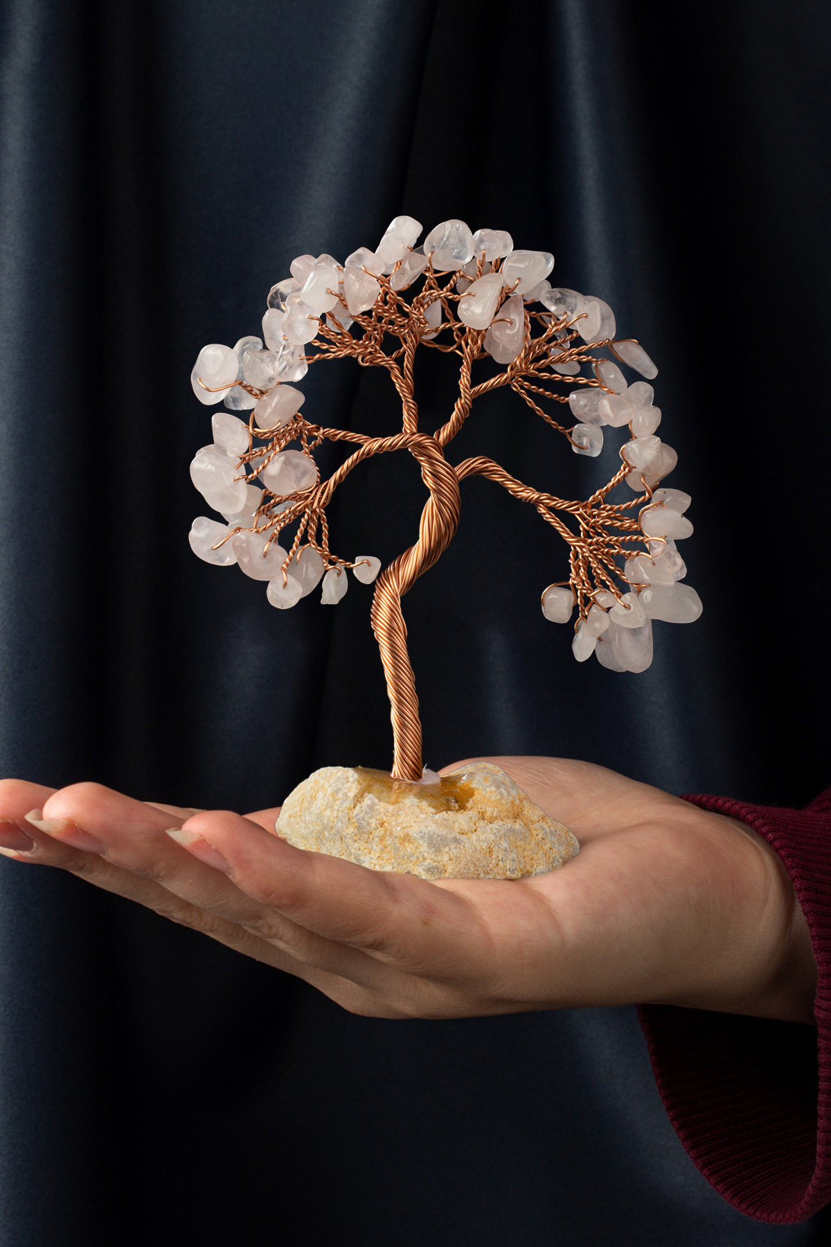 Pembe Kuvars Taşı El Yapımı Doğal Taş Dekoratif Ağaç