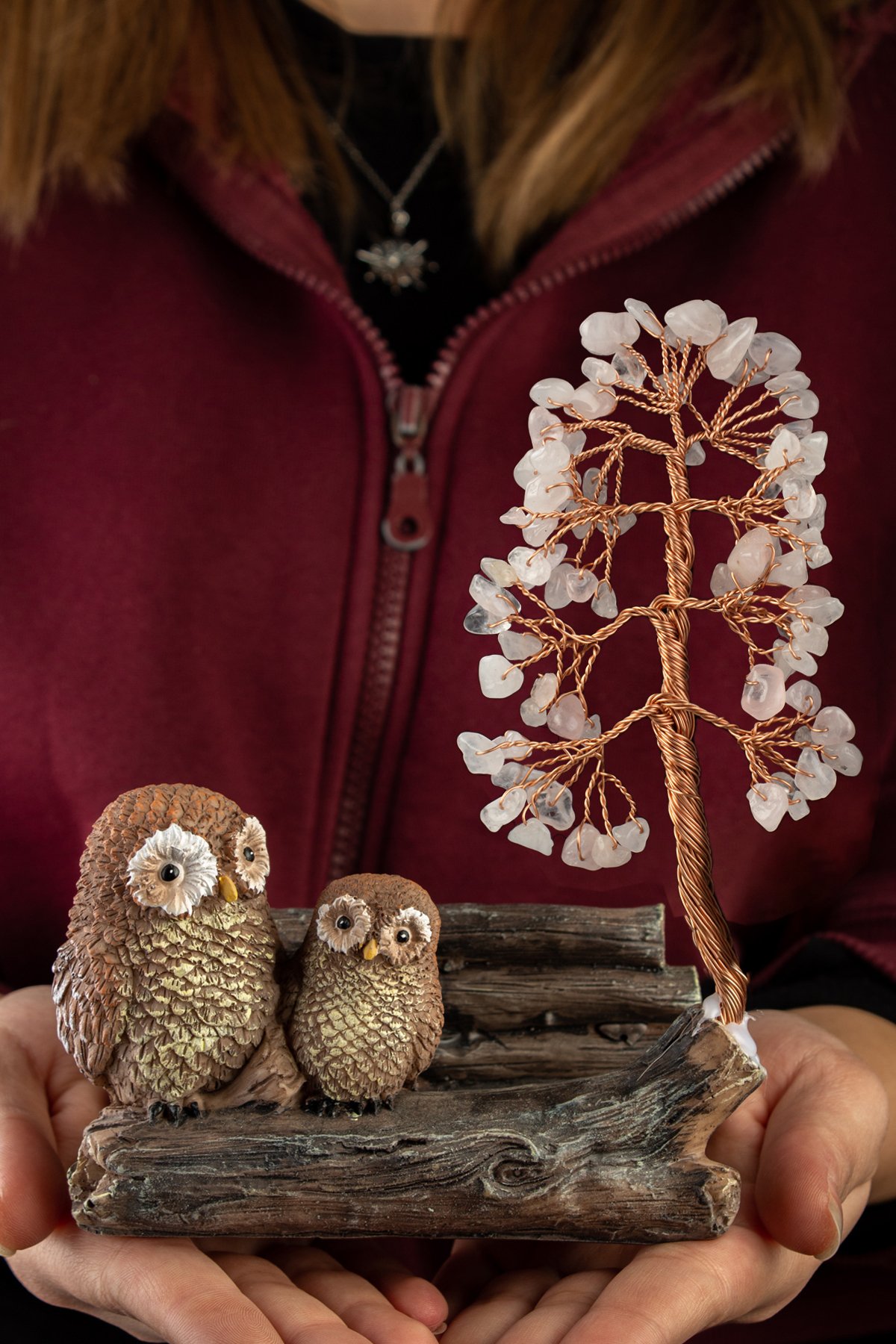Pembe Kuvars Taşı El Yapımı Doğal Taş Dekoratif Ağaç