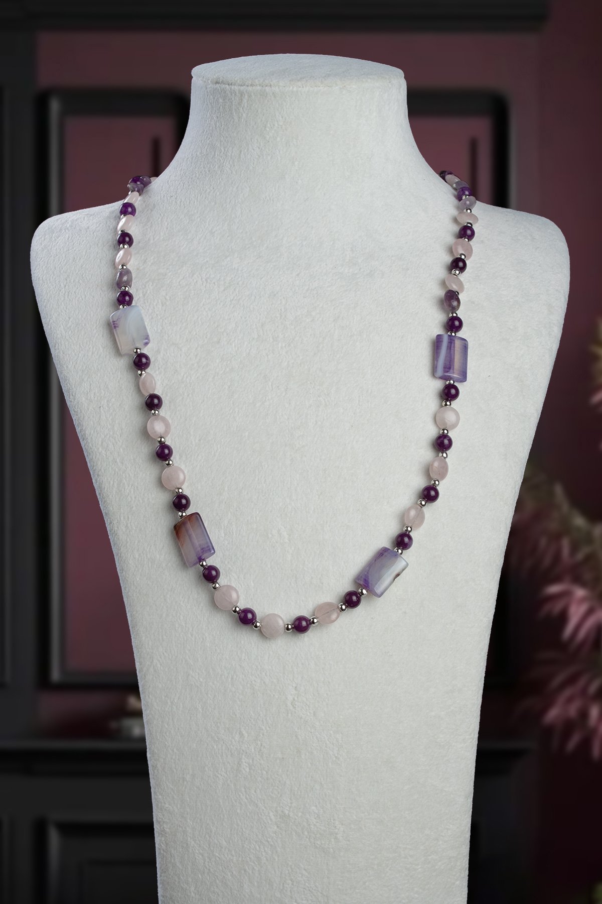 Pembe Kuvars Yassı Daire Kesim & Ametist Doğal Taş Küre Kesim Kolye