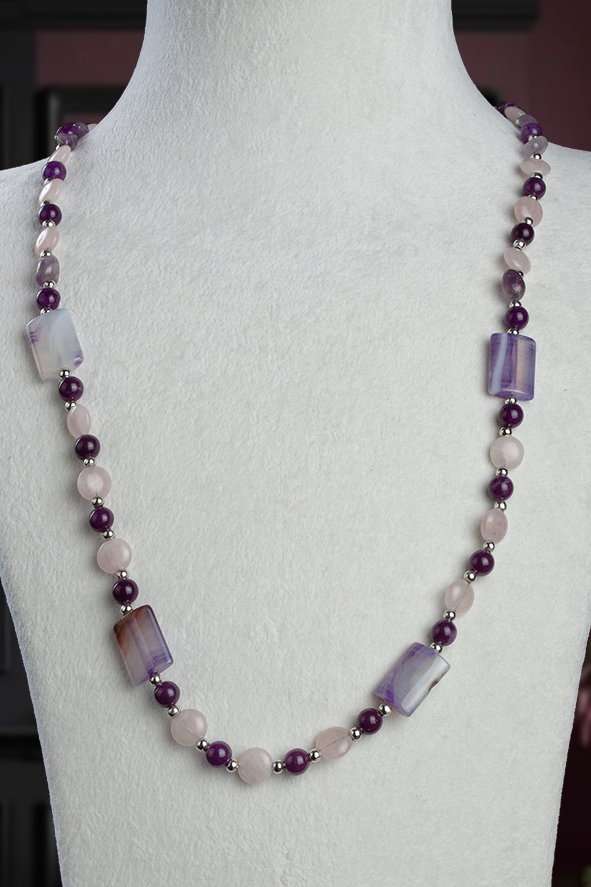 Pembe Kuvars Yassı Daire Kesim & Ametist Doğal Taş Küre Kesim Kolye (KLYDGL-0467)
