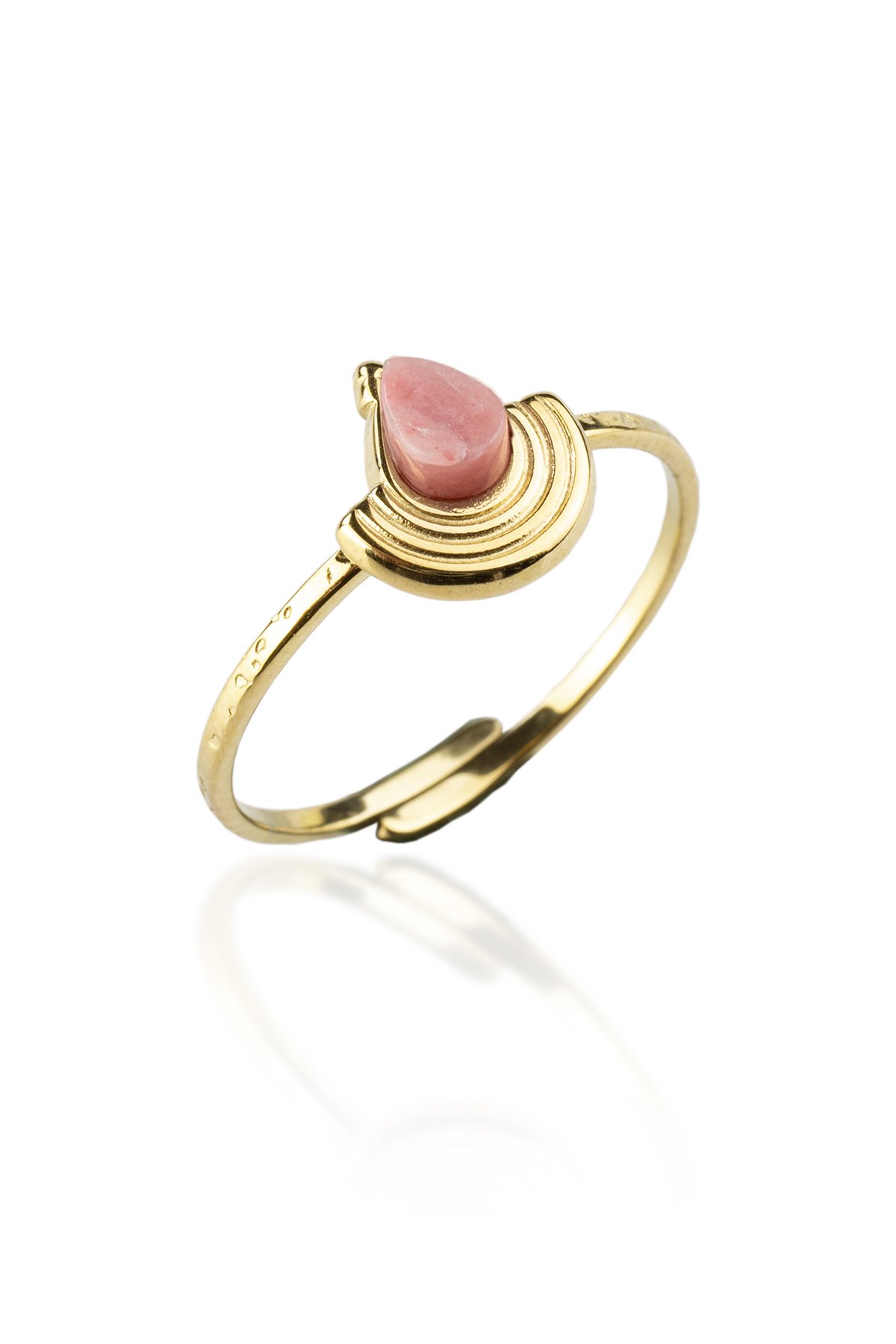 Rodonit Doğal Taş Çelik Damla Kesim Ayarlanabilir Yüzük