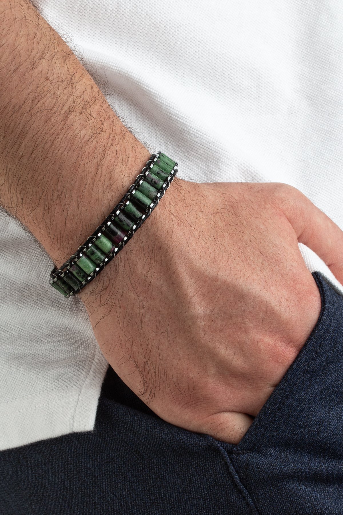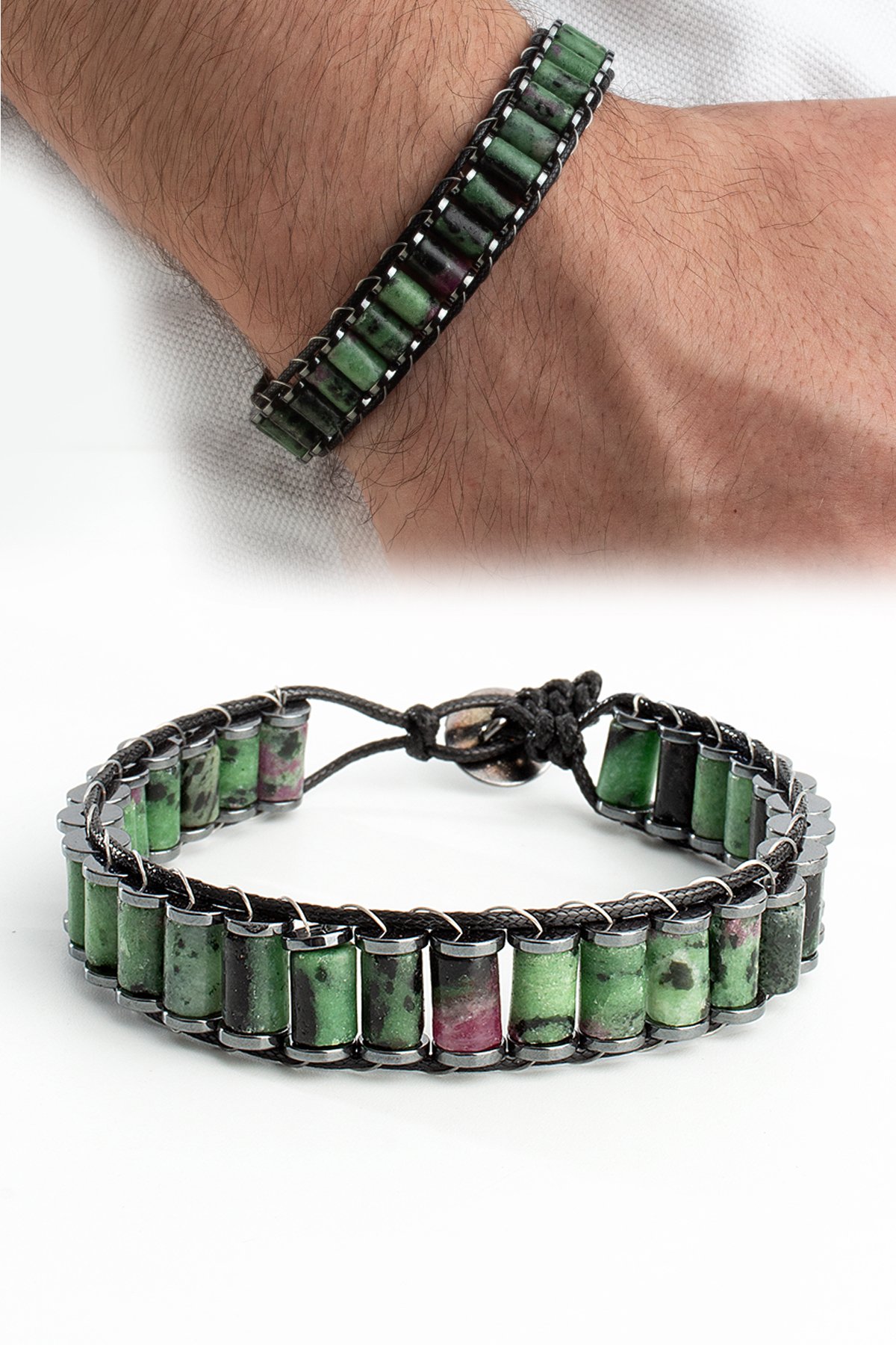 Ruby Zoisit Doğal Taş Örme Erkek Bilekliği 4x2mm