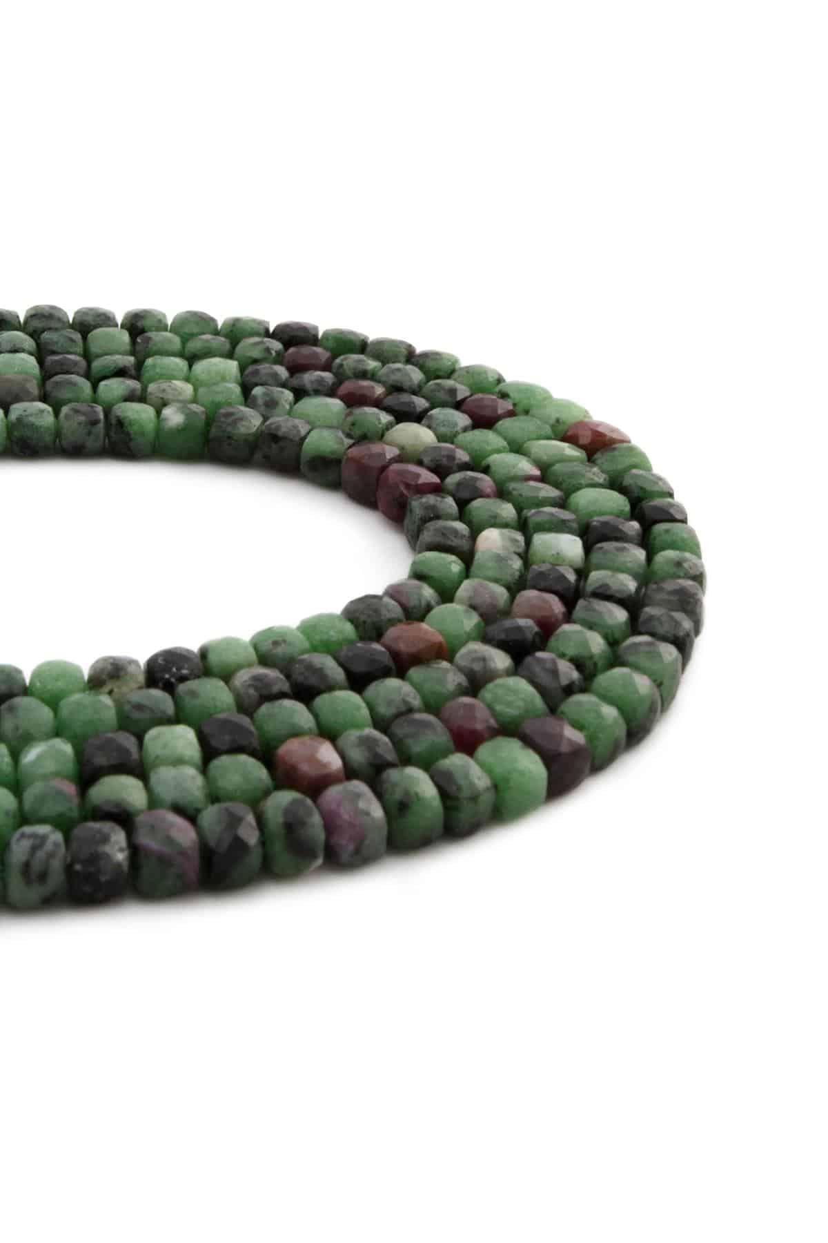 Ruby Zoisit Doğal Taş Parlak Küp Kristal Kesim 4x4mm Dizi