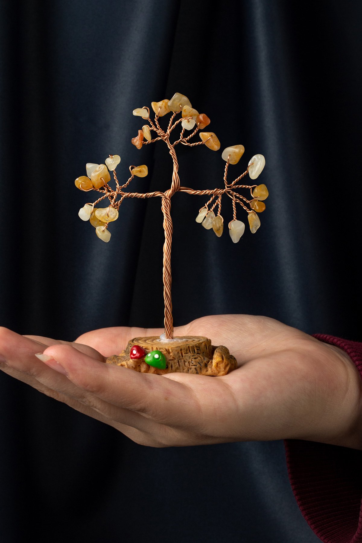 Sarı Akik Taşı El Yapımı Doğal Taş Dekoratif Ağaç (DGLAGC-0106)