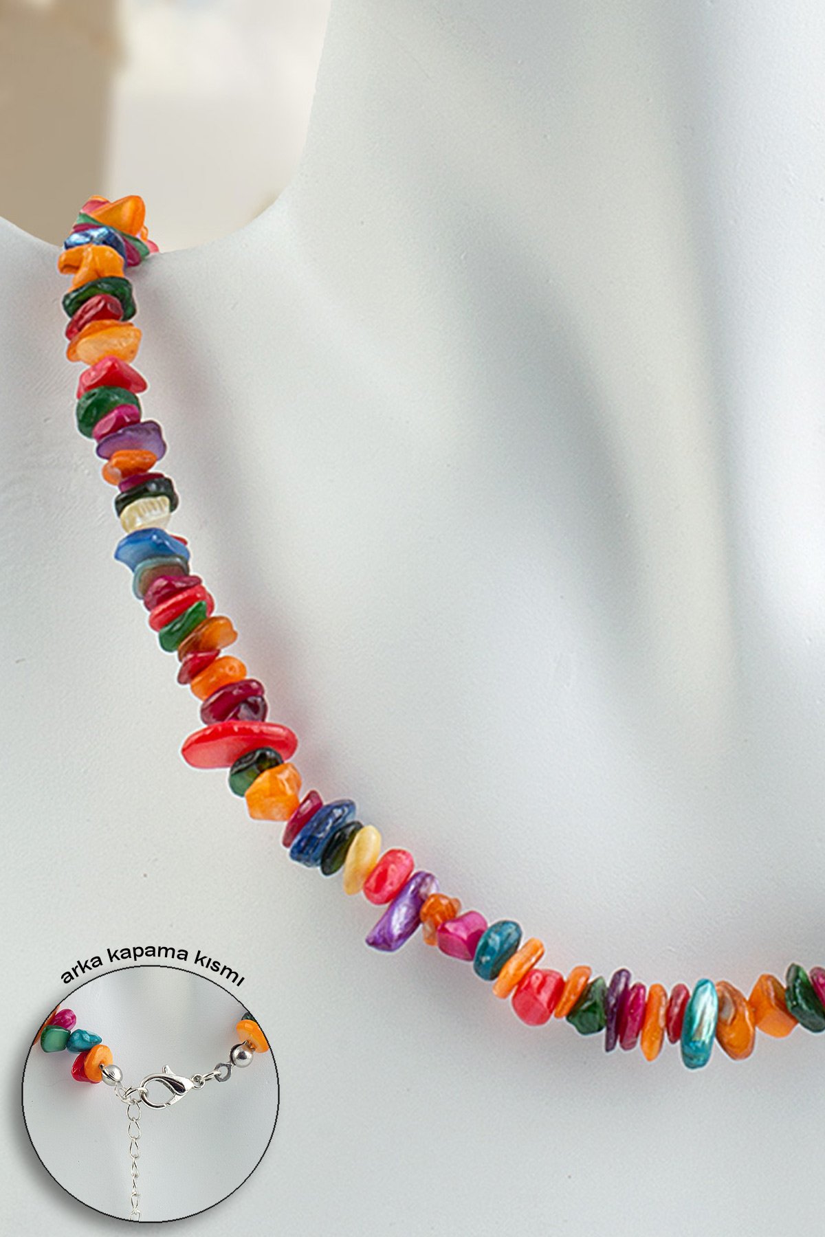 Sedef Doğal Kırık Taş Karışık Tam Tur Kolye