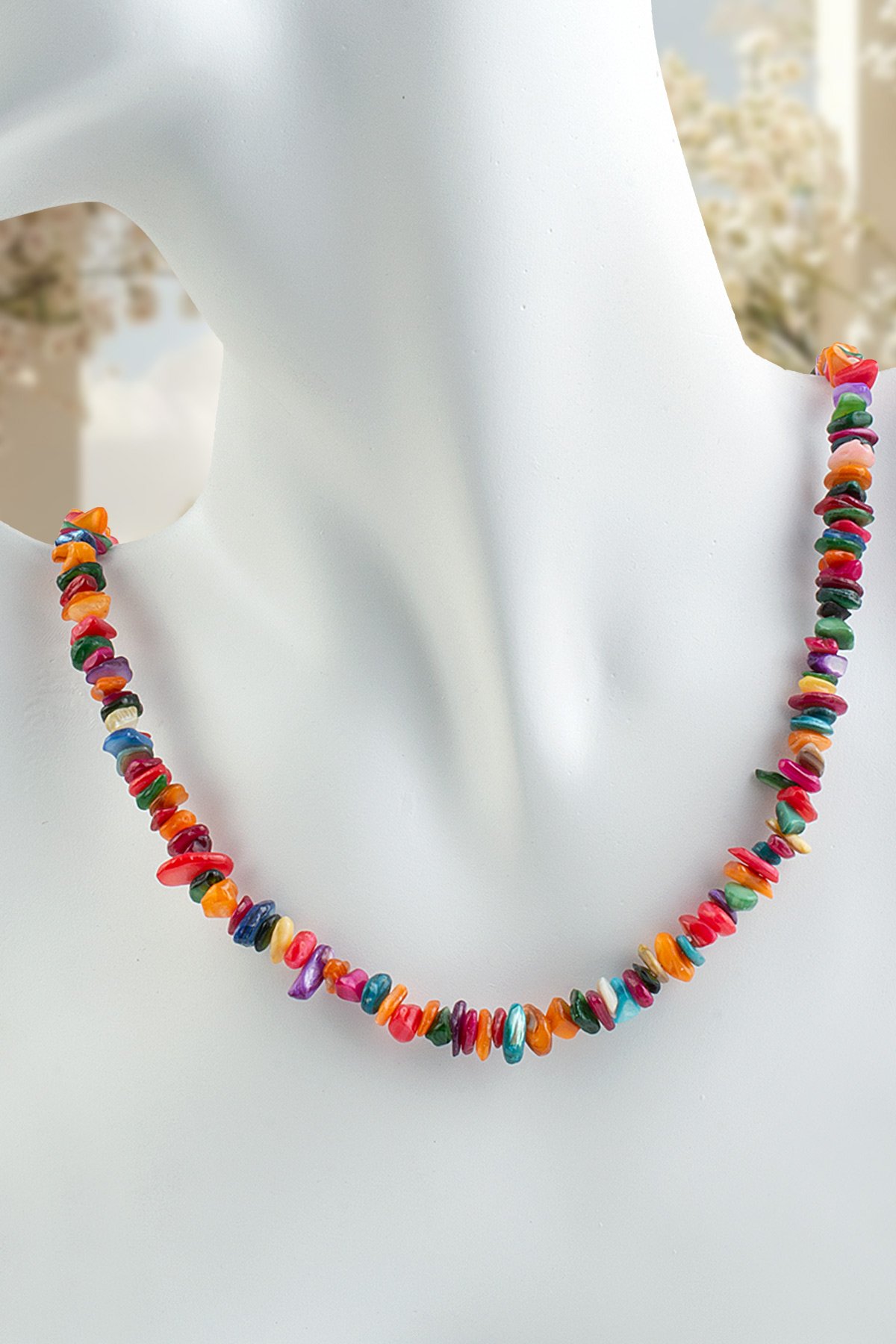 Sedef Doğal Kırık Taş Karışık Tam Tur Kolye (KLYDGL-0113)
