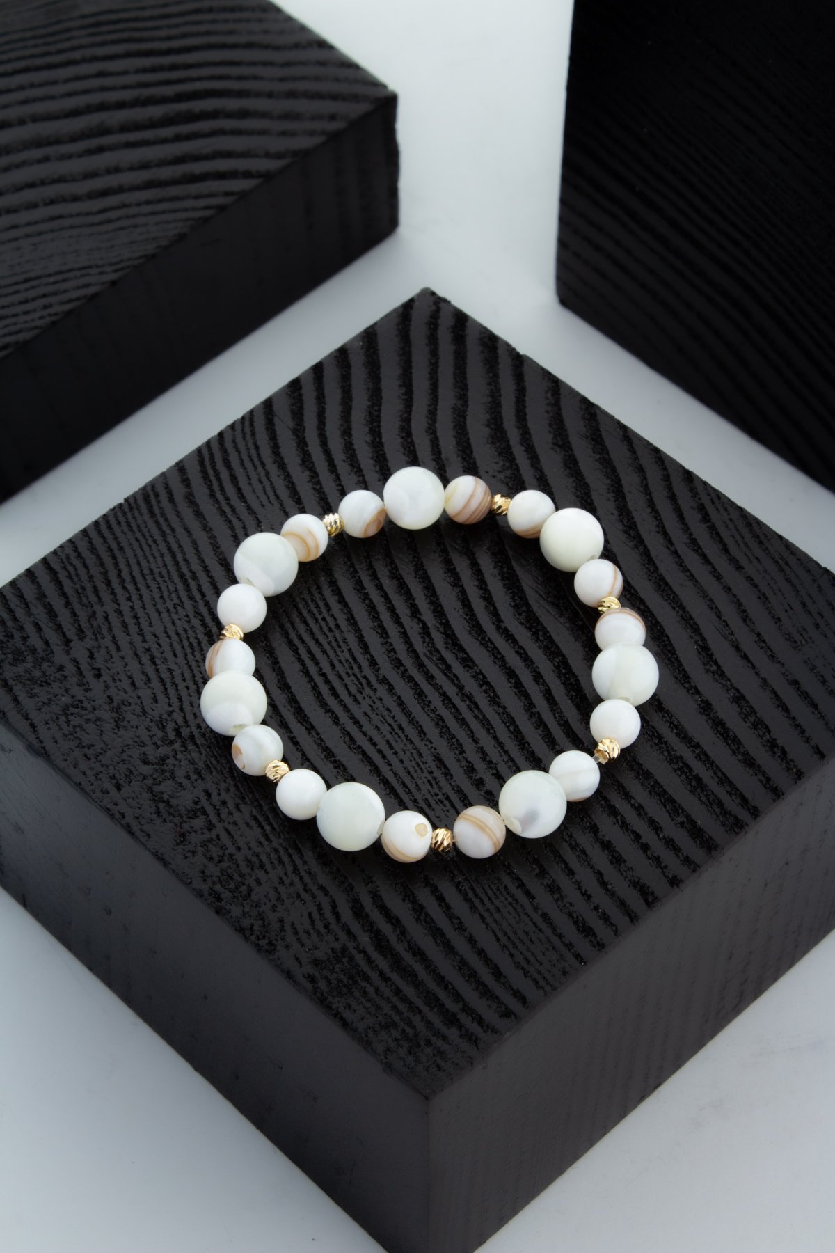 Sedef Doğal Taş Küre Kesim Bileklik (BLKMSN-0224)