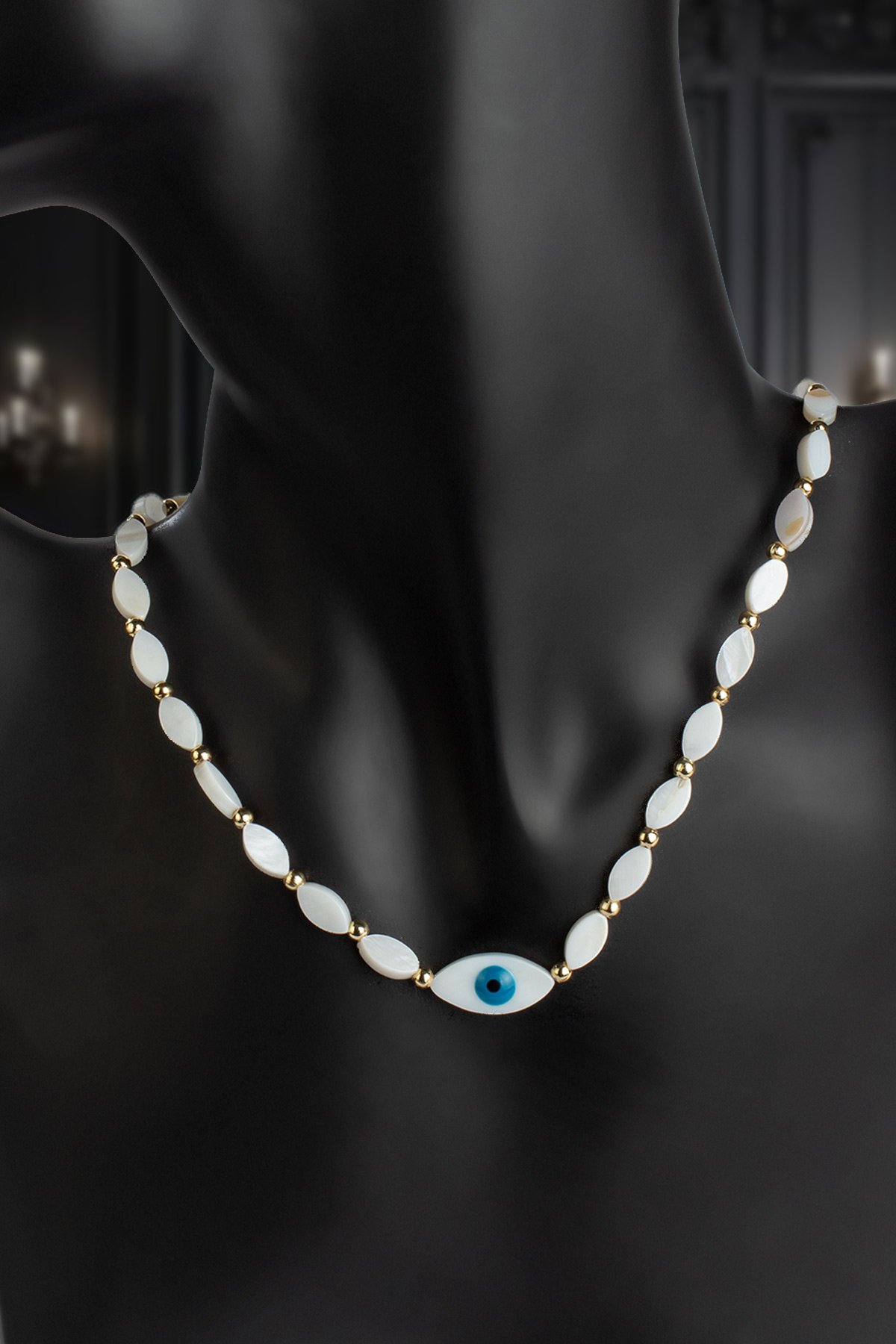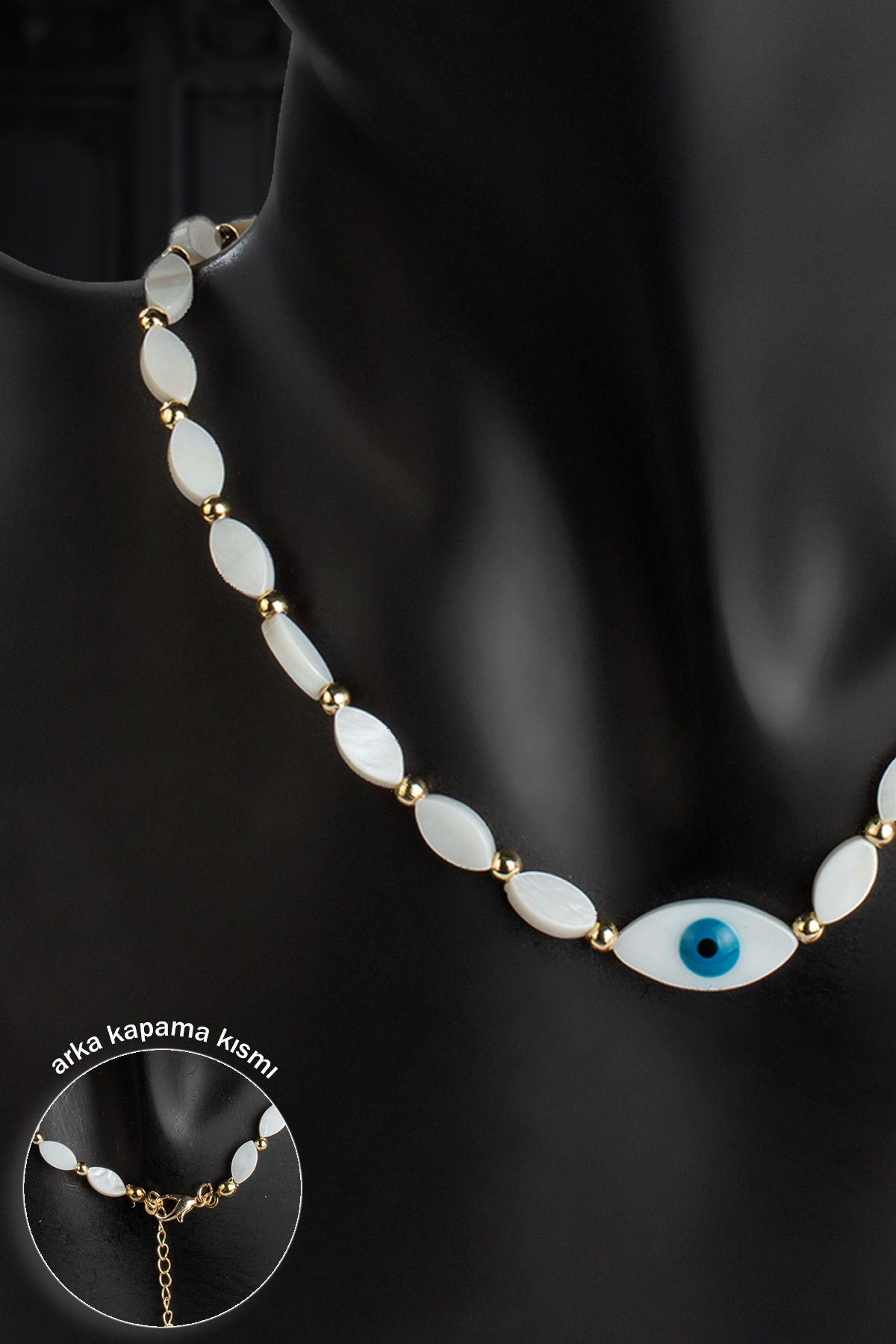 Sedef Doğal Taş Oval Kesim Kolye (KLYDGL-0573)