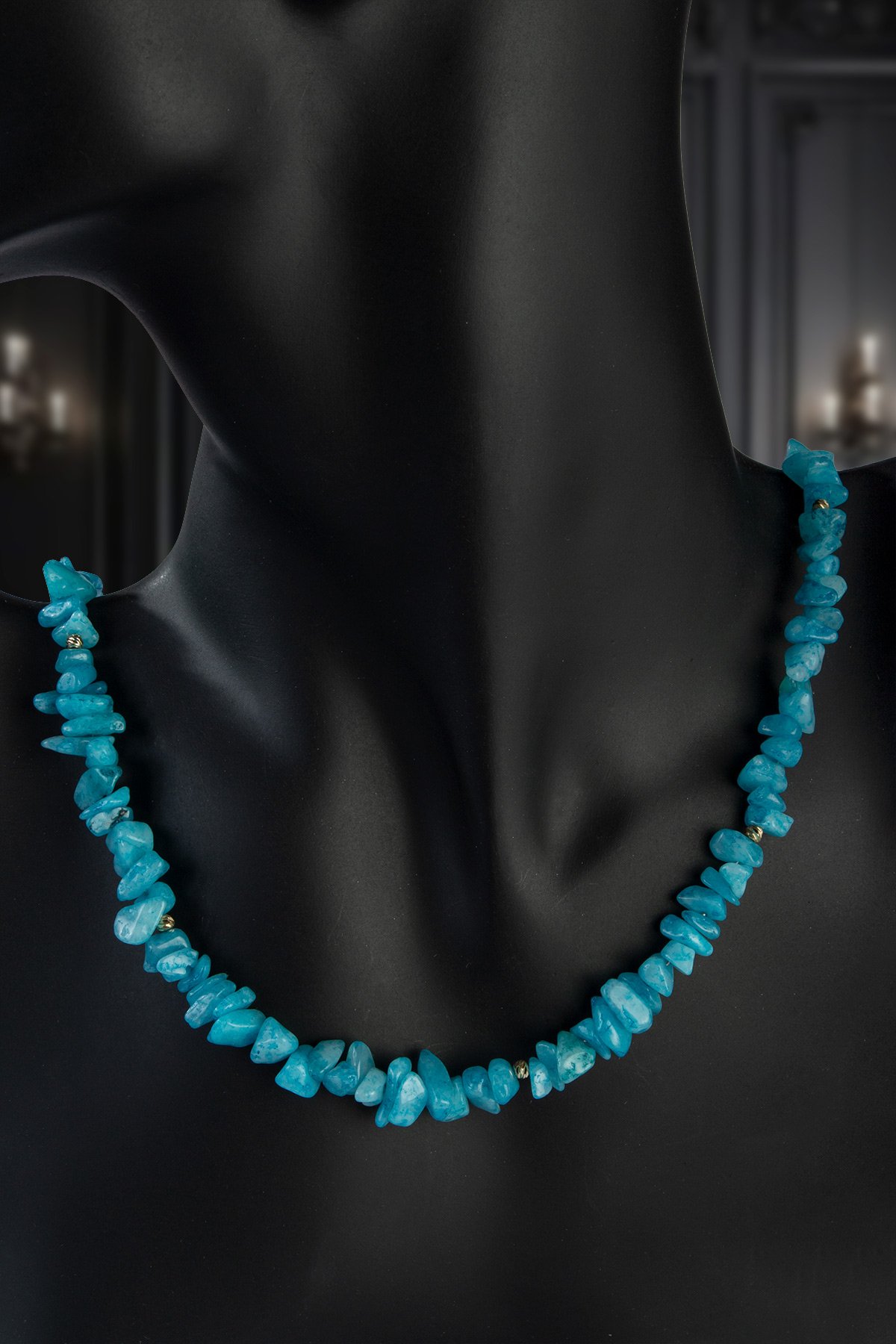 Sıkma Akuamarin Doğal Kırık Taş Zincir Kapamalı Kolye (KLYDGL-0112)