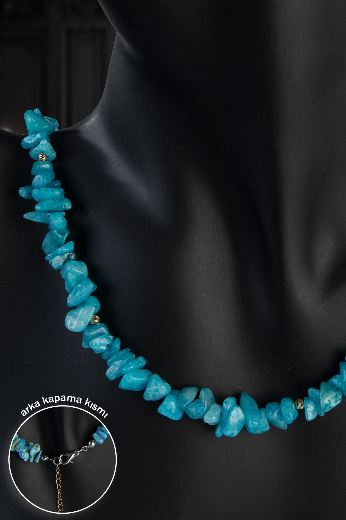 Sıkma Akuamarin Doğal Kırık Taş Zincir Kapamalı Kolye