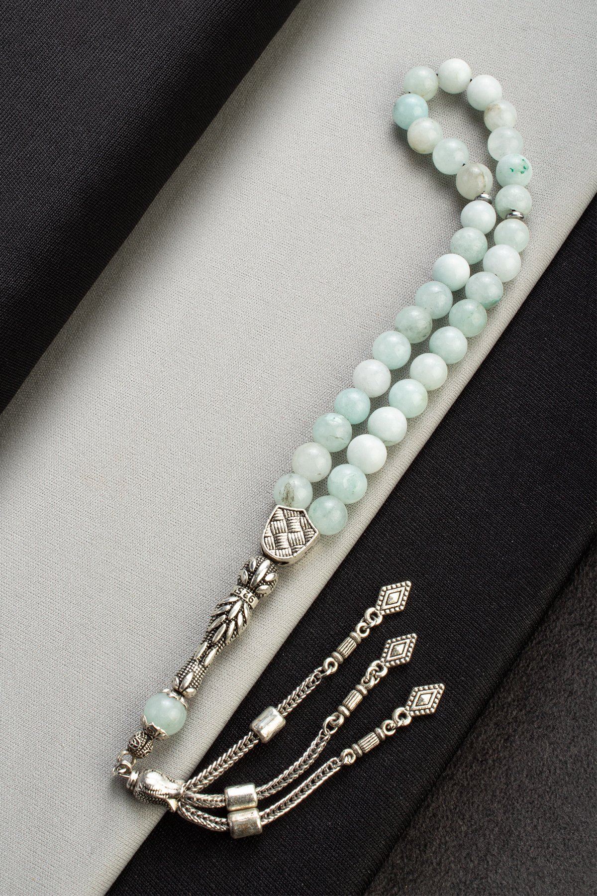 Sıkma Doğal Taş Buz Mavisi Küre Kesim 33 lu 8mm Tesbih