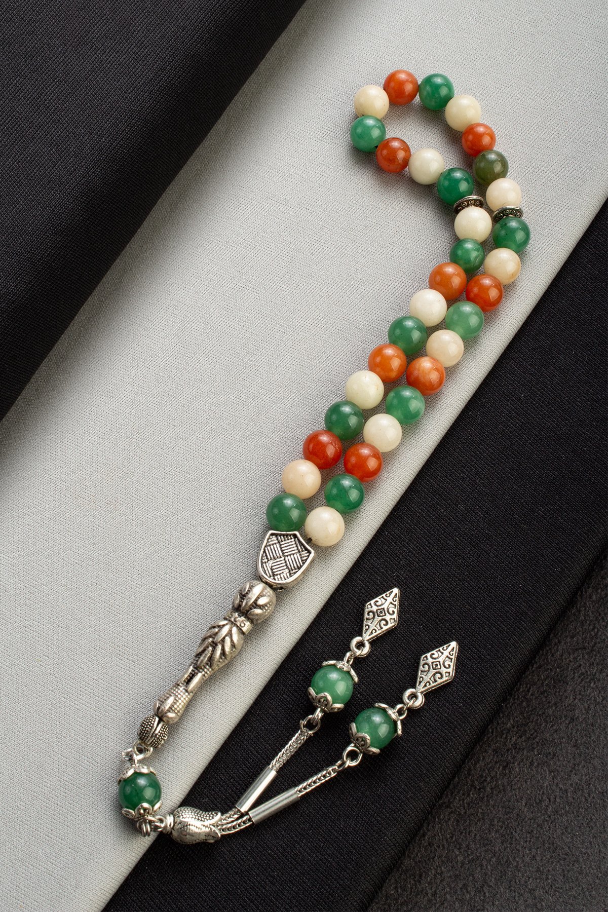 Sıkma Doğal Taş Karışık Küre Kesim 33 lu 8mm Tesbih (TSBDGL-0133)