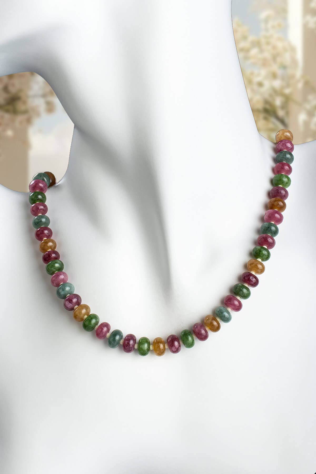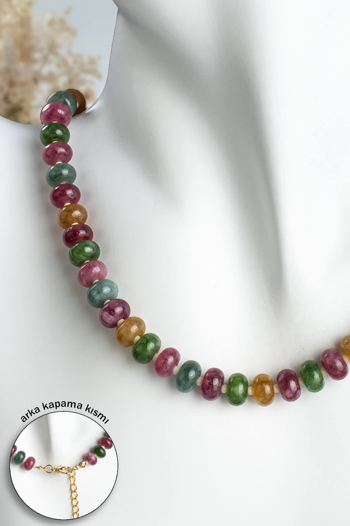 Sıkma Doğal Taş Karışık Rondela Kesim Kolye