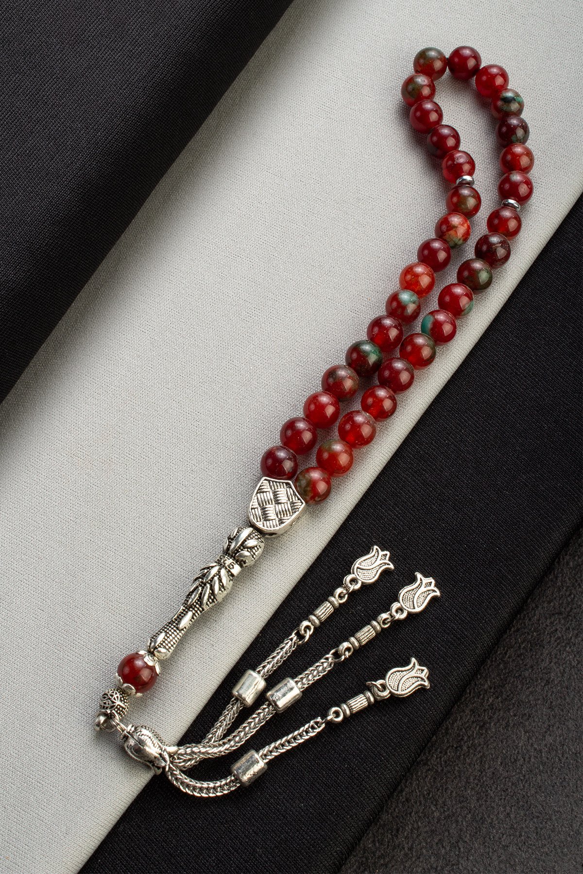 Sıkma Doğal Taş Kırmızı Küre Kesim 33 lu 8mm Tesbih