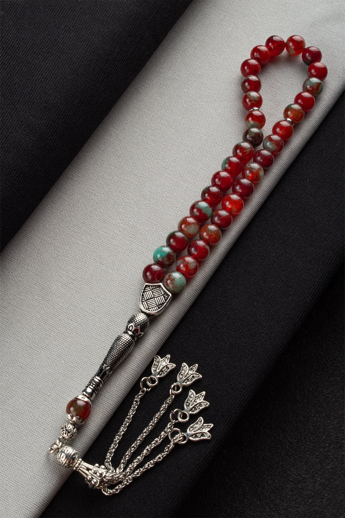 Sıkma Doğal Taş Küre Kesim Kırmızı Yeşil 33 lü 8mm Tesbih