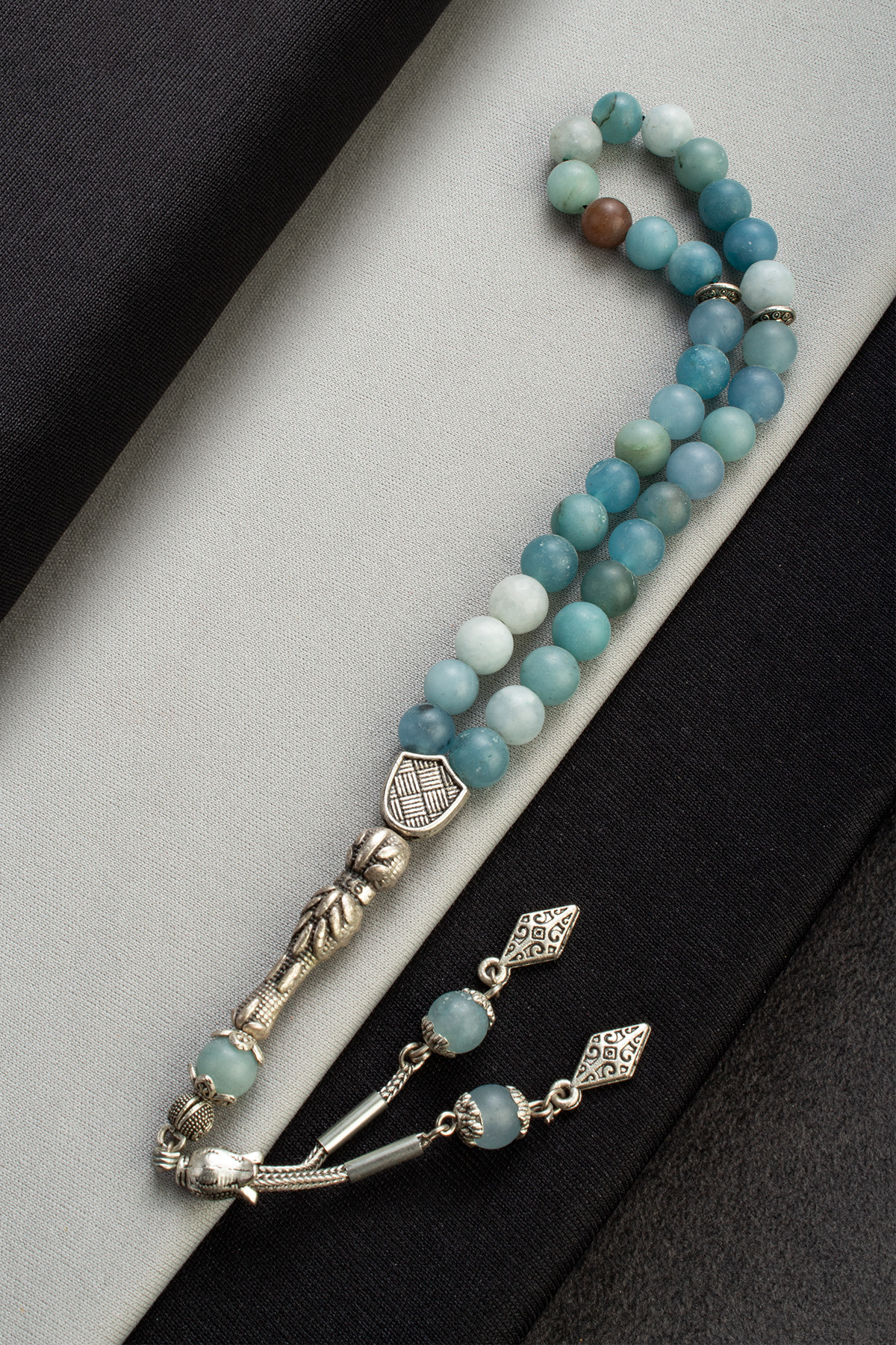 Sıkma Doğal Taş Mat Mavi Küre Kesim 33 lu 8mm Tesbih