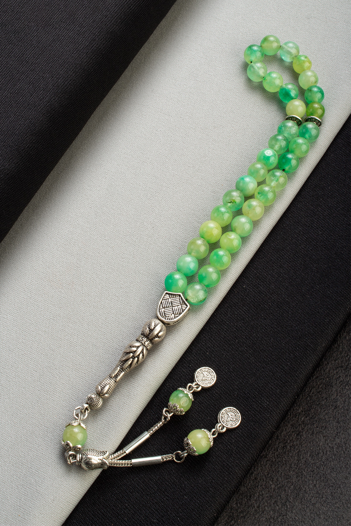Sıkma Doğal Taş Yeşil Küre Kesim 33 lu 8mm Tesbih