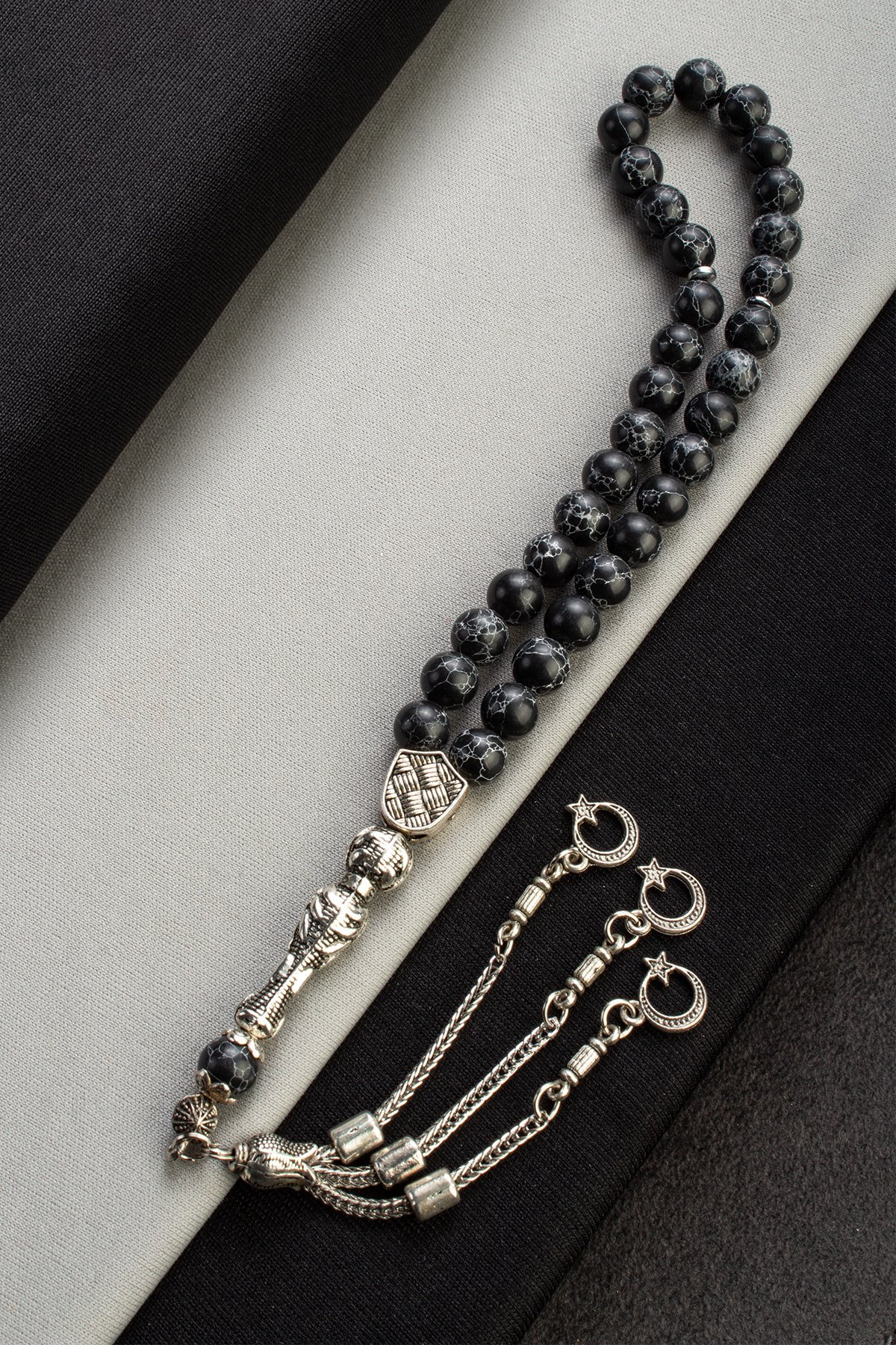 Beyaz zemin üzerine gri damarlarla süslü opak bir mineraldir. Gözenekli yapısı sayesinde boyanabilir. Takı ve dekorasyonda popüler; hafifliğiyle kolay taşınır.