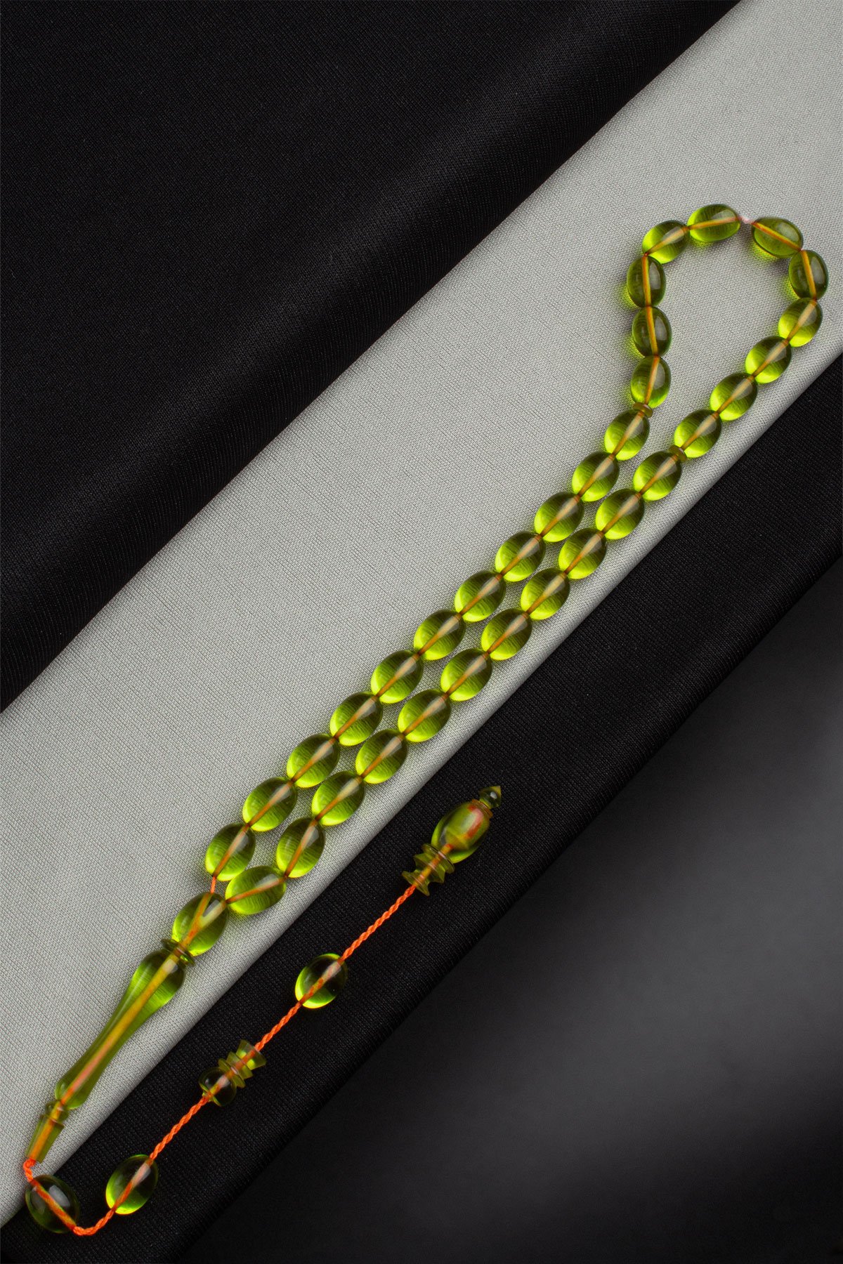 Sıkma Kehribar Açık Yeşil Arpa Kesim 8x10mm 33 Lu Tesbih (TSBKHR-0004)