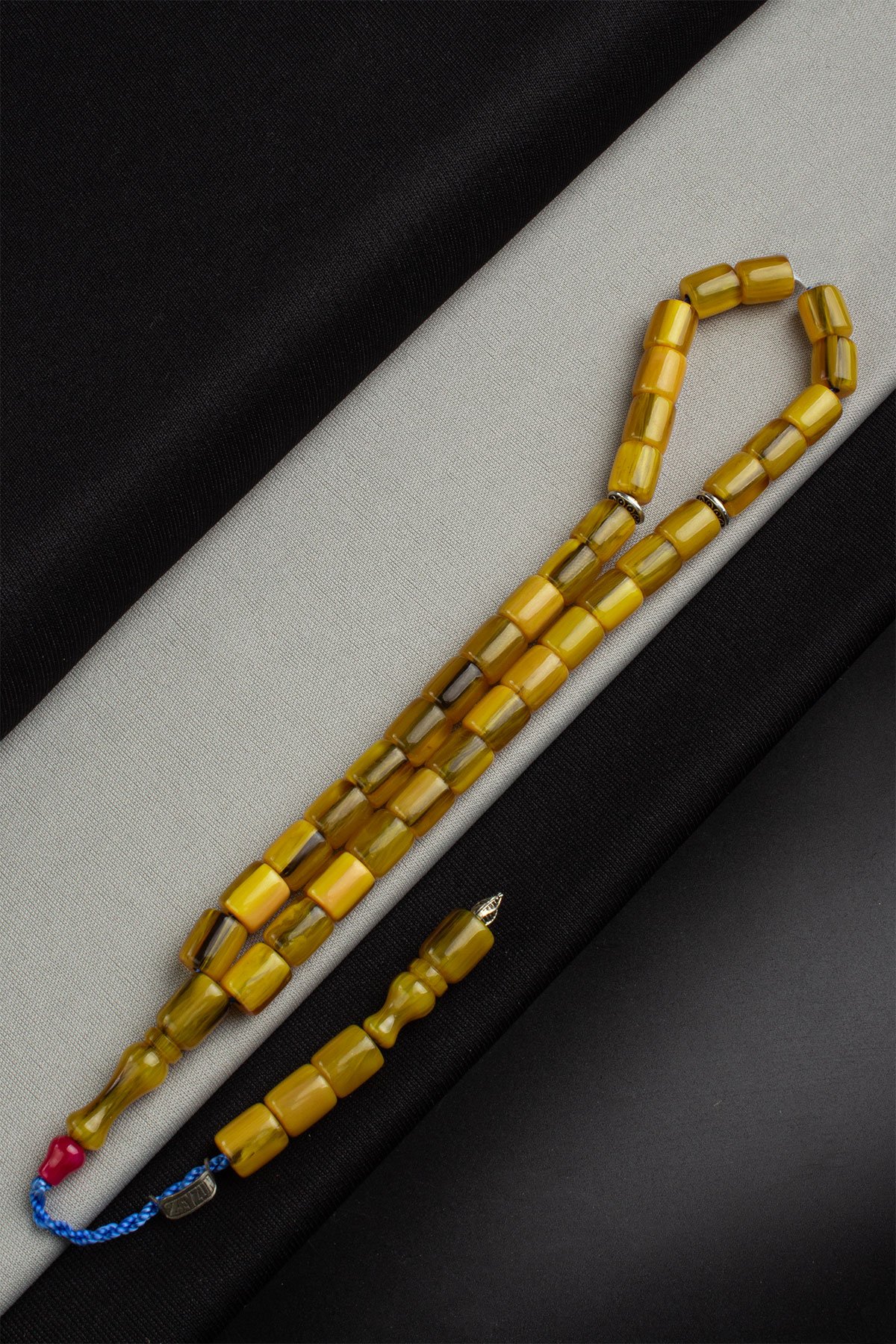 Sıkma Kehribar Bal Sarısı Bombeli Kapsül Kesim 9x10mm 33 Lu Tesbih Zeyzüm Usta İşçiliği (TSBKHR-0036)