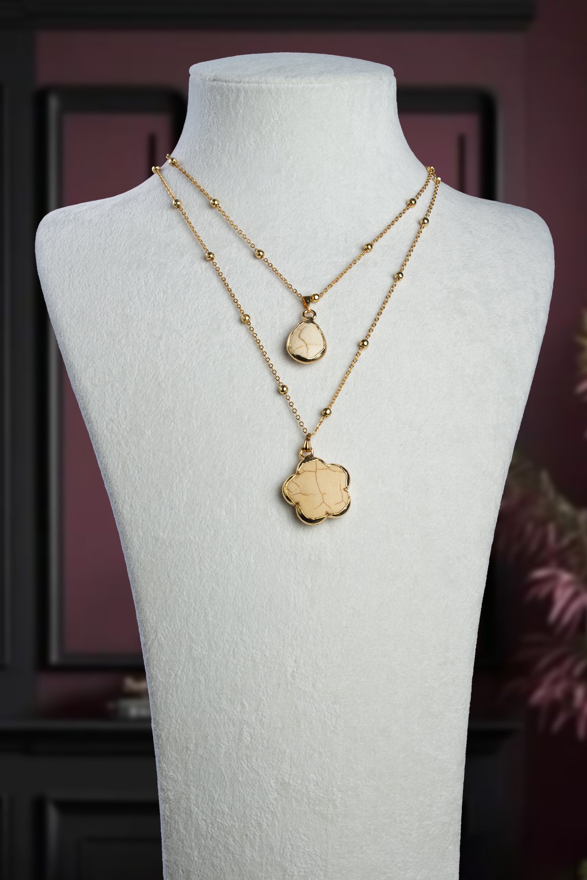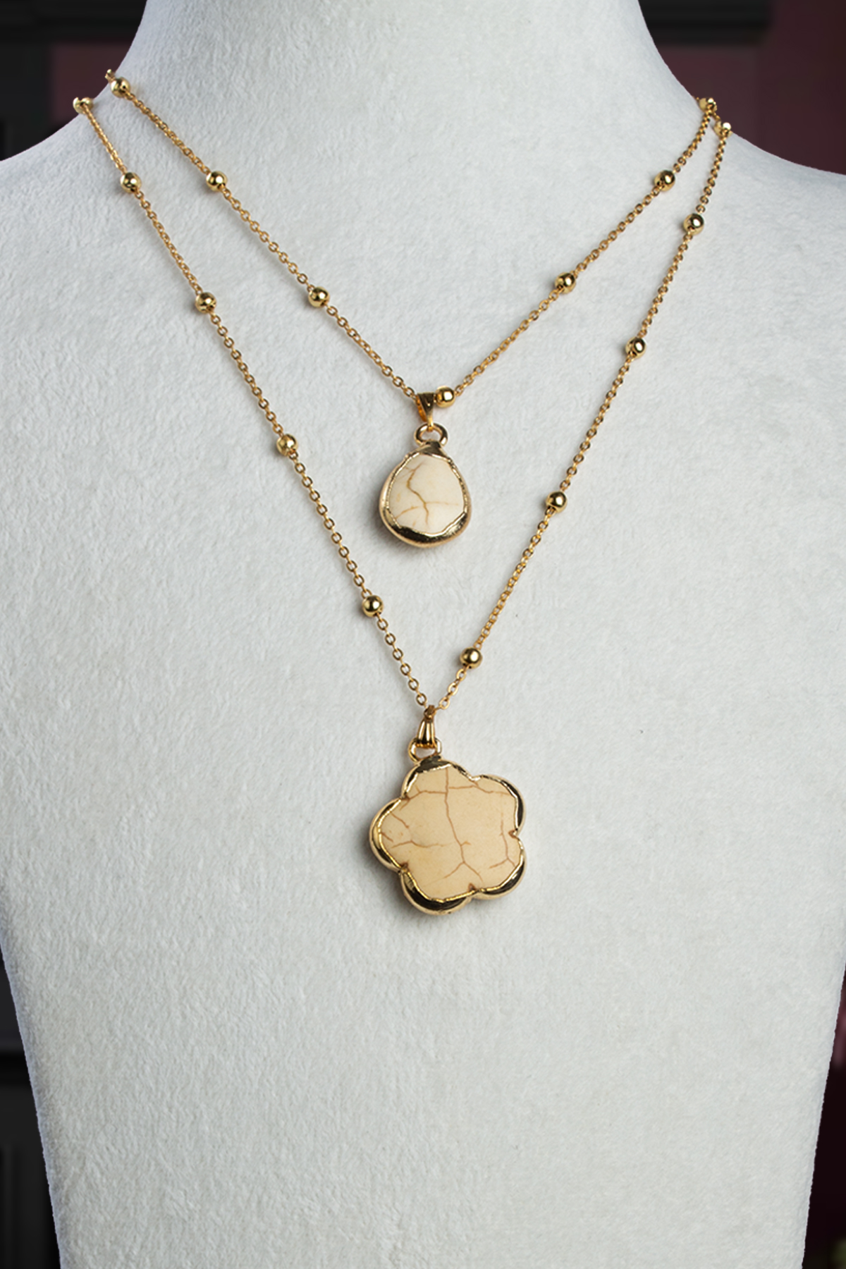 Sıkma Turkuaz Doğal Taş Yıldız - Damla Kesim Lak Kaplama Kolye