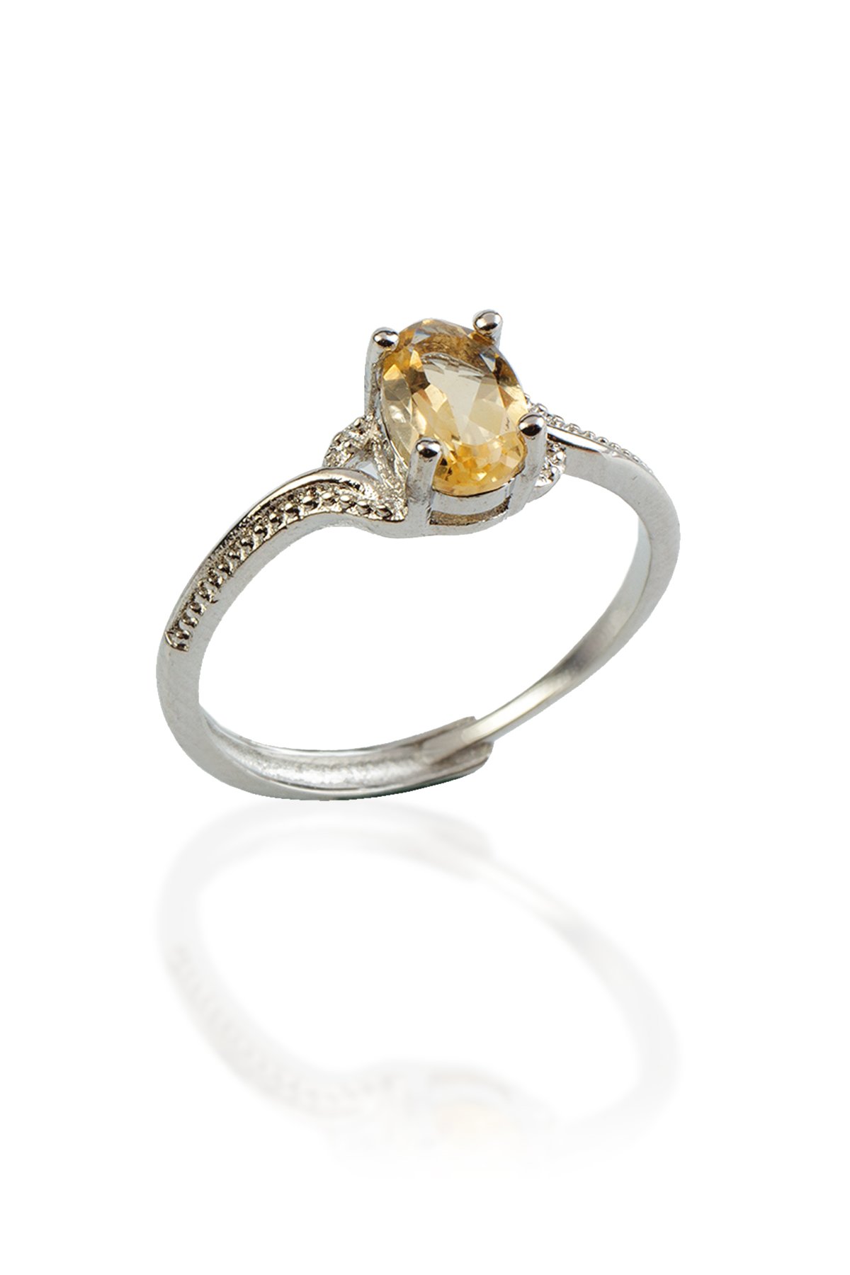 Sitrin Doğal Taş Oval Kristal Kesim Pirinç Üzeri Gümüş Kaplama Ayarlanabilir Yüzük (DGLYZK-0198)