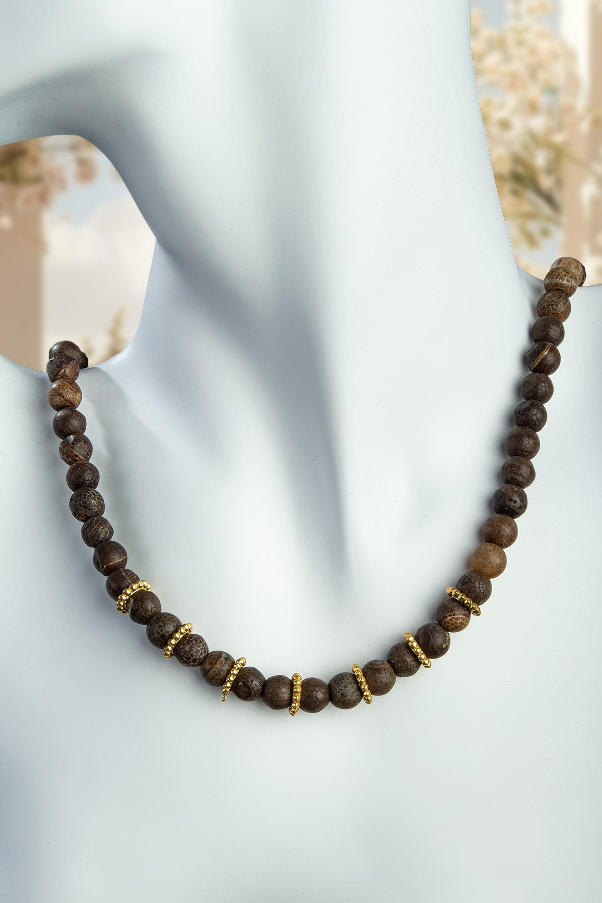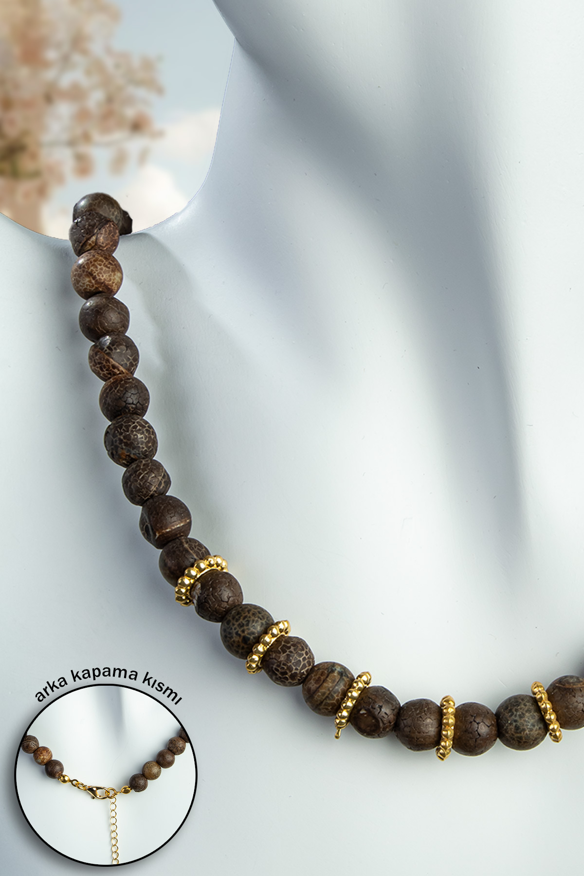 Tibet Akik Doğal Taş Küre Kesim Zincir Kapamalı Kolye