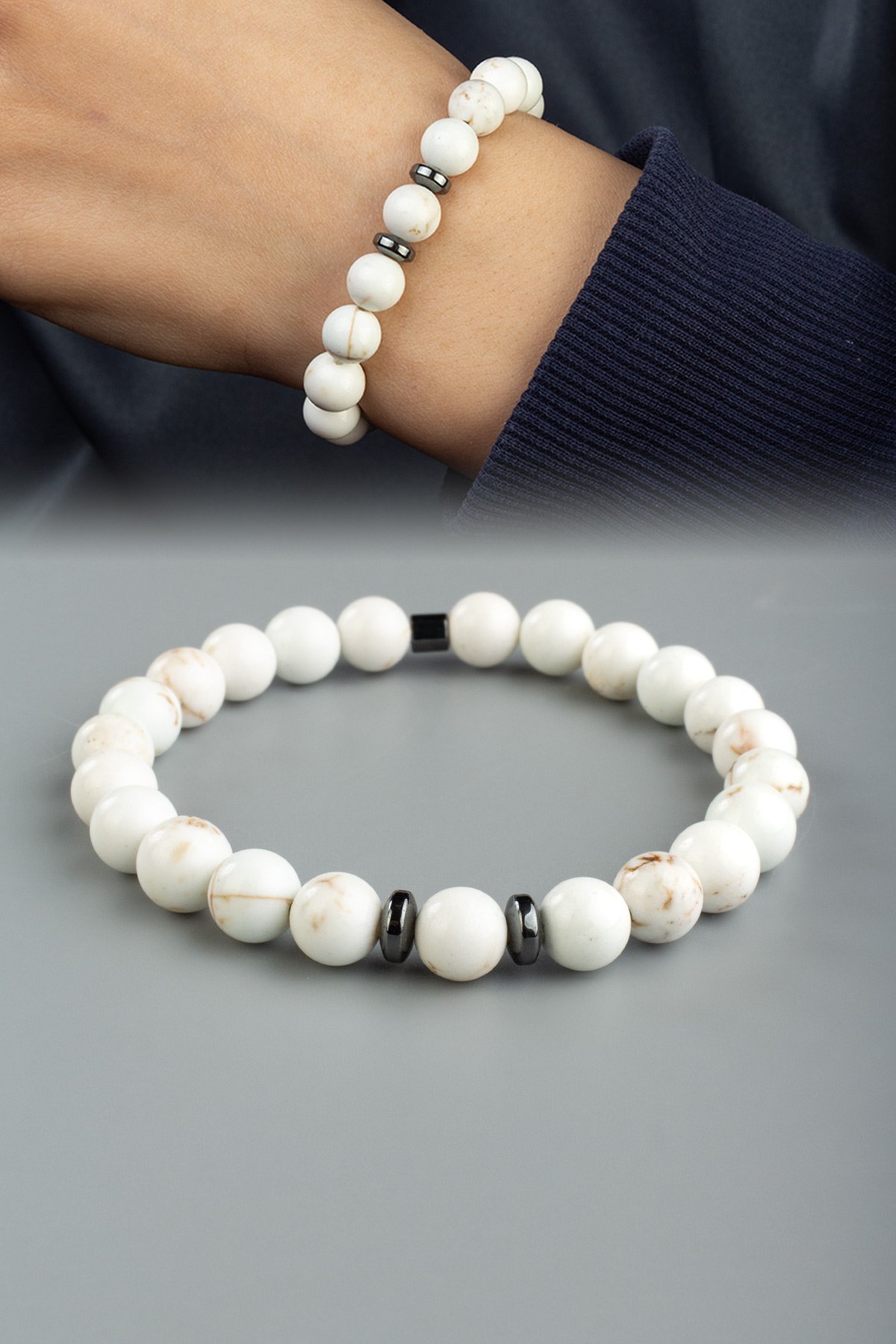 Turkuaz Doğal Taş Beyaz Küre Kesim 8mm Bileklik (BLKMSN-0395)