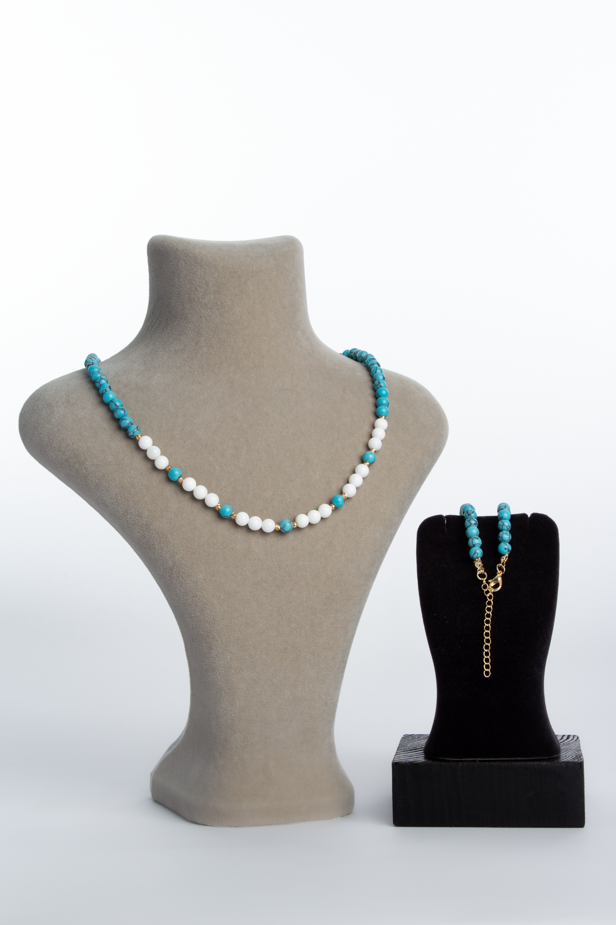 Turkuaz Doğal Taş Küre Kesim Zincir Kapamalı Kolye