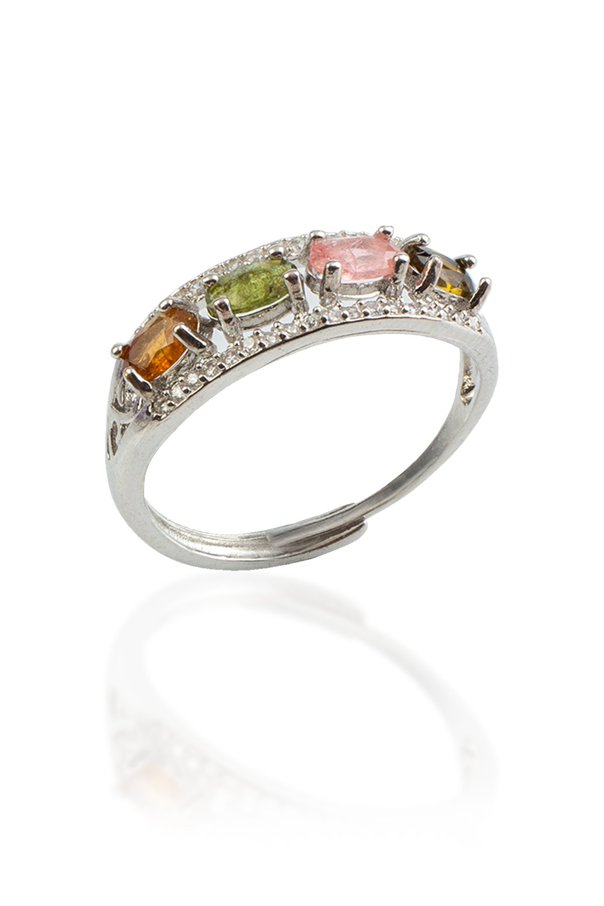 Turmalin Doğal Taş Oval Kristal Kesim Pirinç Üzeri Gümüş Kaplama Ayarlanabilir Yüzük (DGLYZK-0196)