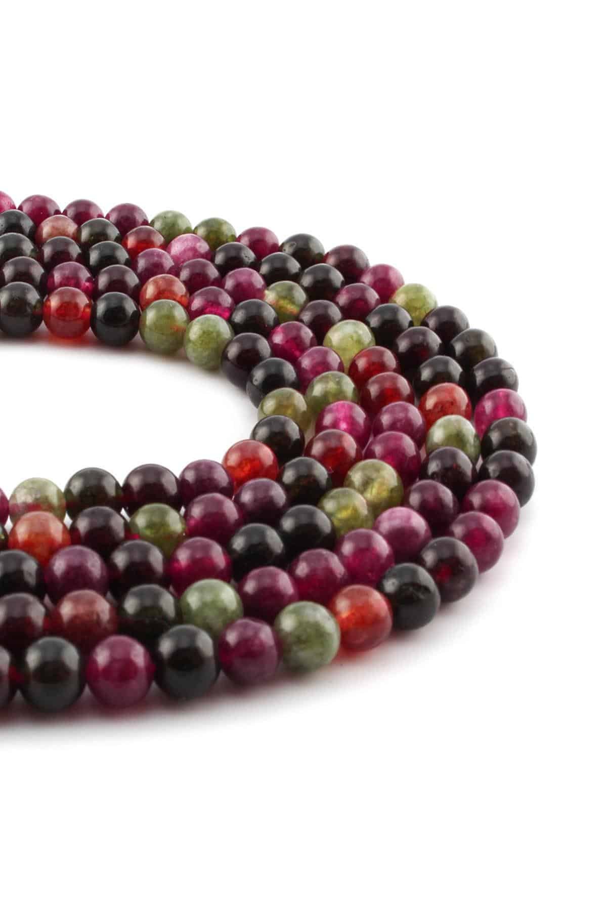 Turmalin Doğal Taş Parlak Karışık Küre Kesim 6mm Dizi [B+]