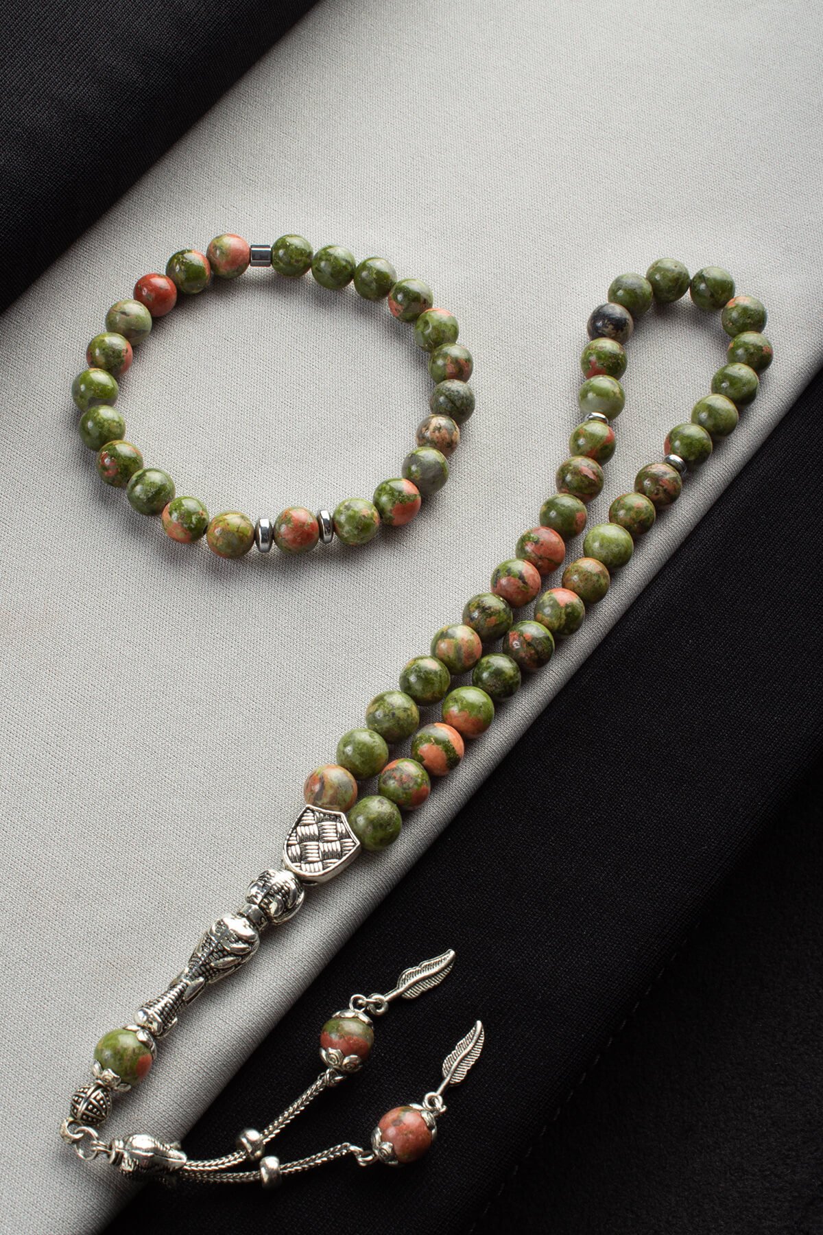 Unakit Doğal Taş Misina Bileklik & Unakit 33 lü 8mm Tesbih Seti (DGLSET-0041)