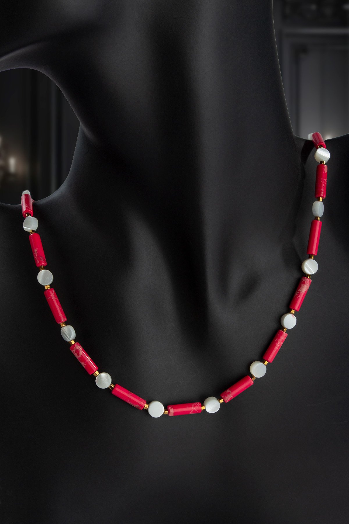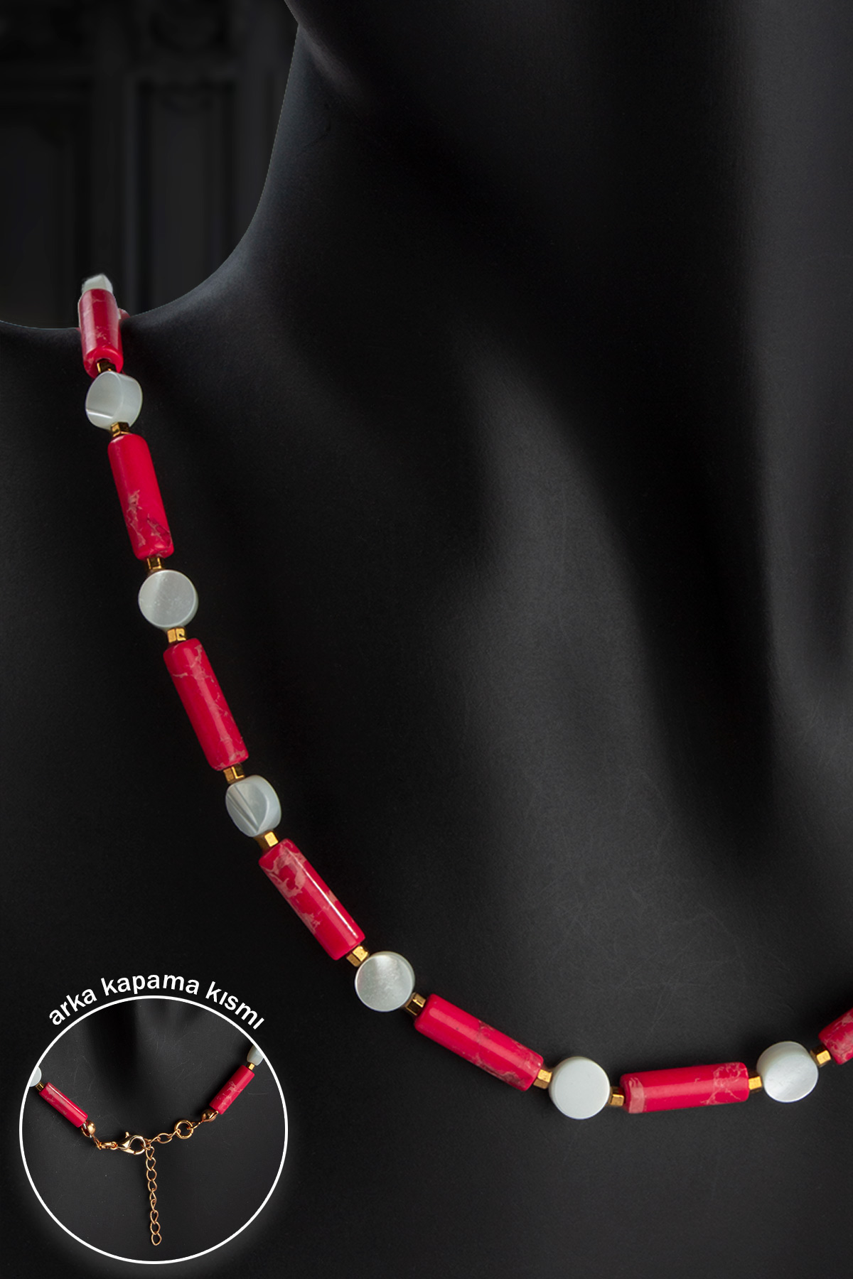 Varisit - Sedef Doğal Taş Silindir Kesim Zincir Kapamalı Kolye