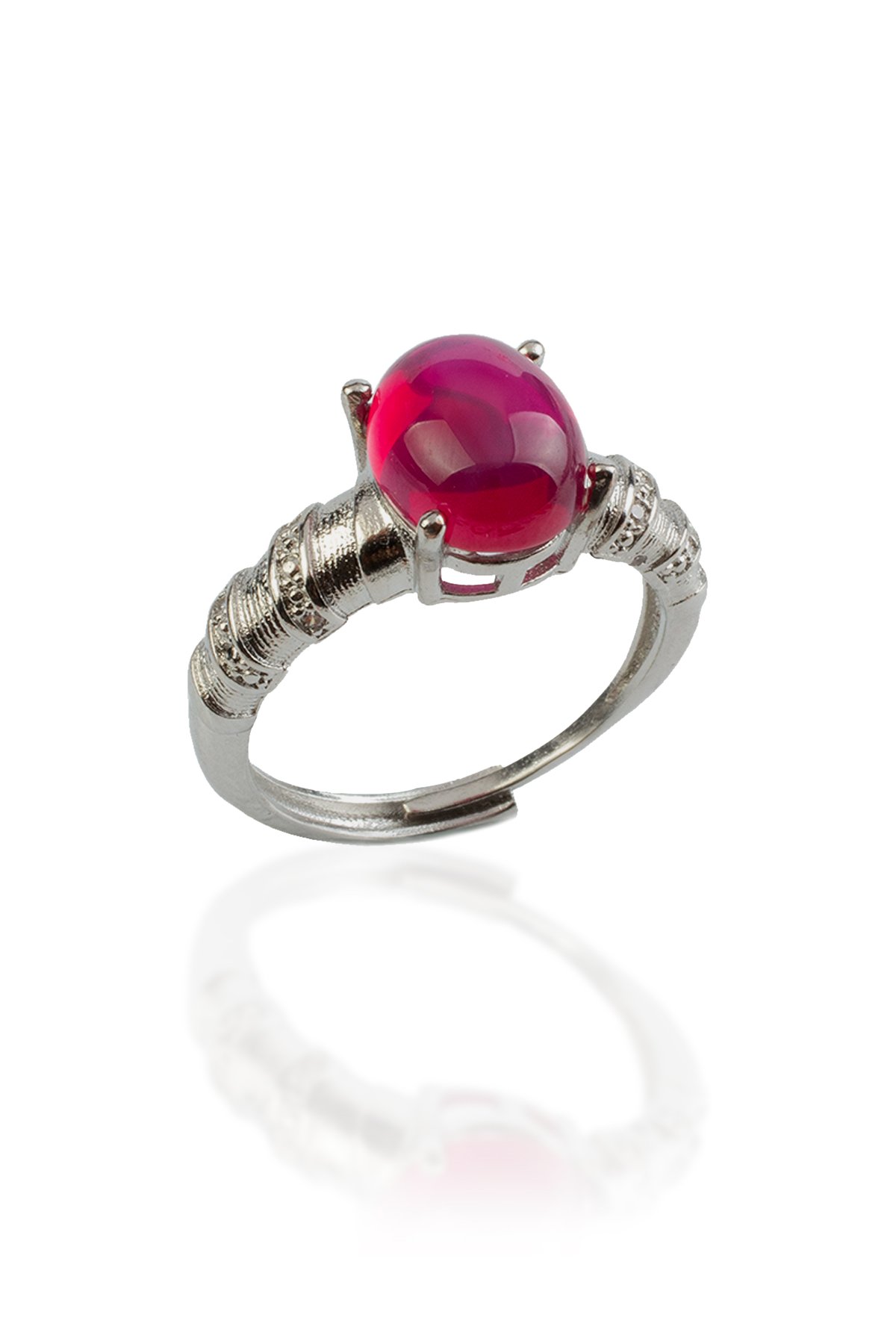 Yakut Doğal Taş Oval Kesim Pirinç Üzeri Gümüş Kaplama Ayarlanabilir Yüzük (DGLYZK-0188)